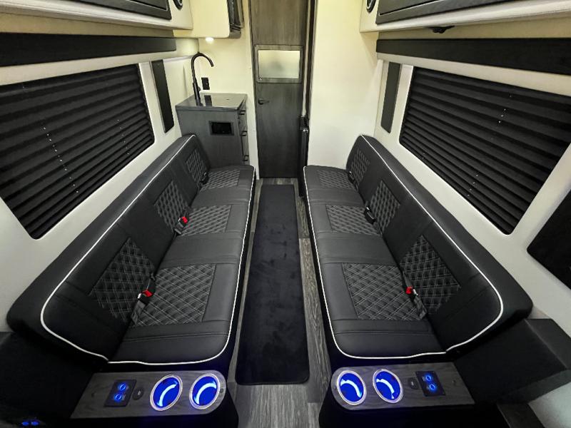 With any V-Cruise Class B diesel motorhome by OGV Luxury Coach, you will find high-quality and style at every turn. These Class B conversion vans feature color match bumpers and side moldings, a 7,500 lb. towing capacity, and an exterior utility bay with 30 Amp shore power, dual 110V outlets, an outside shower, plus tank fill and rinse for added convenience. The driver will love having a rear view camera for easy maneuvering, along with active brake assist, crosswind assist, and headlight assist. You'll love the interior of the V-Cruise with its handmade woodwork and satin finish, carpeted floor mats throughout the cabin, custom seating with double needle stitching, and more luxurious features. There is also an integrated touchscreen control system, plus a 100 Ah lithium auxiliary house battery and 2,000 watt inverter to keep you powered up. And each model is available with AWD, which will be perfect if you plan to travel tougher terrain; see dealer for more details!