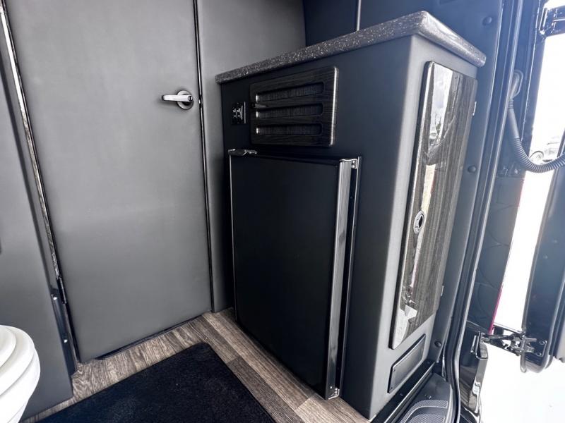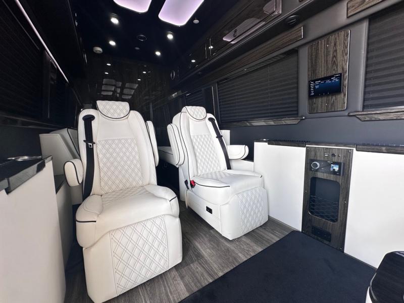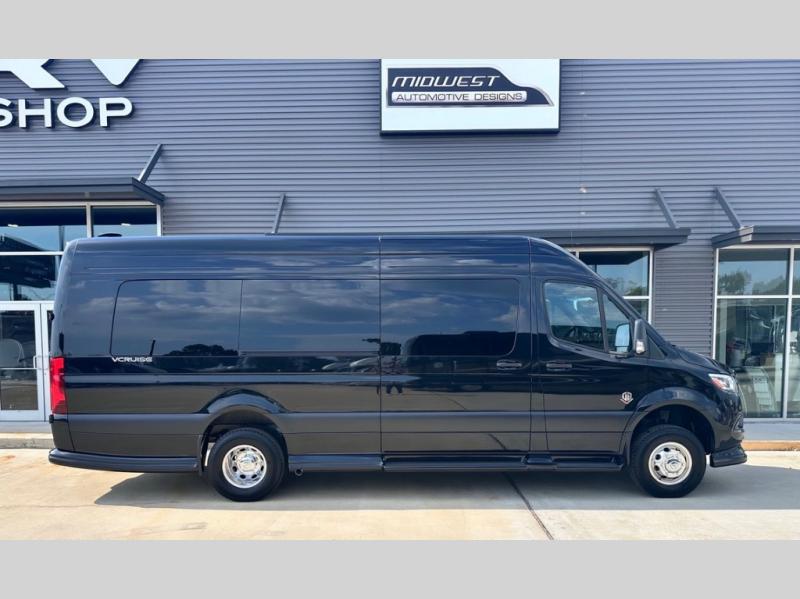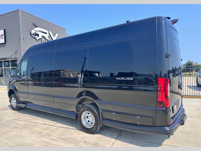 With any V-Cruise Class B diesel motorhome by OGV Luxury Coach, you will find high-quality and style at every turn. These Class B conversion vans feature color match bumpers and side moldings, a 5,000 lb. towing capacity, and an exterior utility bay with 30 Amp shore power, dual 110V outlets, an outside shower, plus tank fill and rinse for added convenience. The driver will love having a rear view camera for easy maneuvering, along with active brake assist, crosswind assist, and headlight assist. You'll love the interior of the V-Cruise with its handmade woodwork and satin finish, carpeted floor mats throughout the cabin, custom seating with double needle stitching, and more luxurious features. There is also an integrated touchscreen control system, plus a 100 Ah lithium auxiliary house battery and 2,000 watt inverter to keep you powered up.