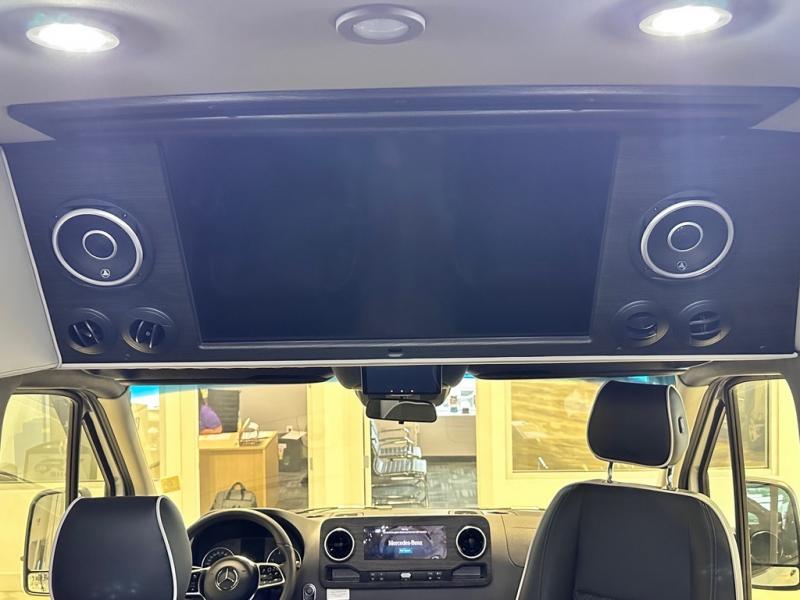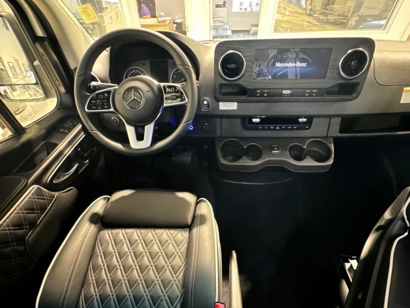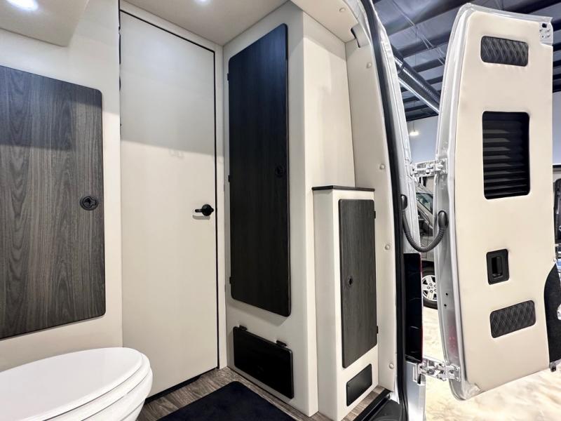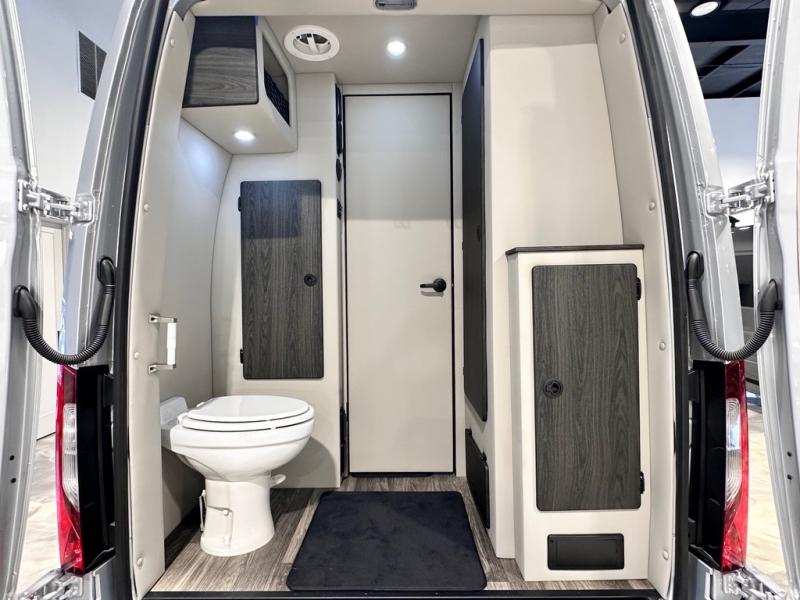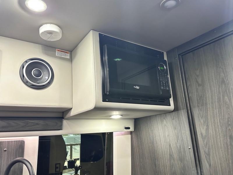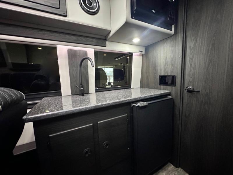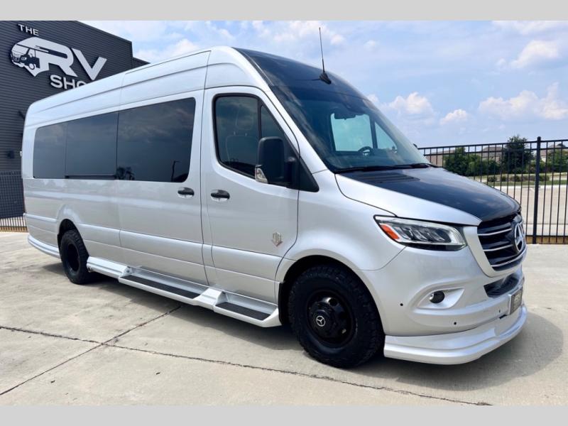 Are looking for a van to take on day trips? This coach will seat nine perfectly with five captain's chairs and a sofa/foldout bed, which will double as sleeping space for one to two if you need to take it overnight. The kitchenette across from the sofa includes a sink to freshen up with, and there is a 3.75 cu. ft. 12V refrigerator for cold drinks. A rear toilet includes a privacy door and there is luggage storage for added convenience. This model also includes a 32 gallon black/grey combination tank, and an optional partition wall can be added for chauffeur driven customer requirements!