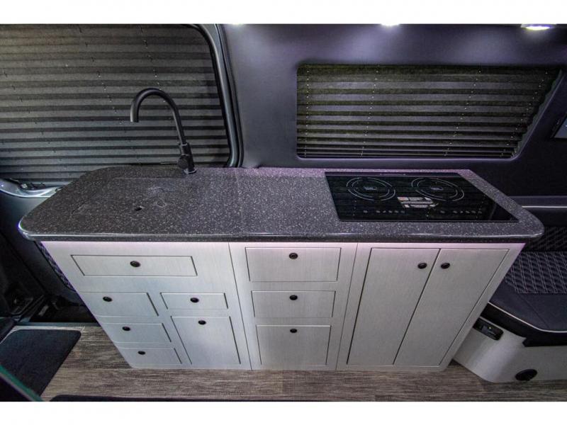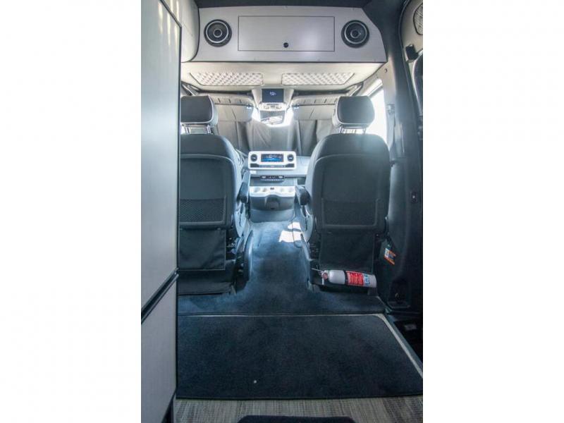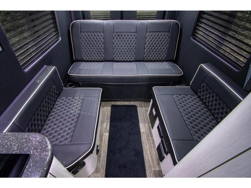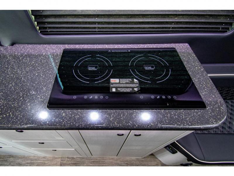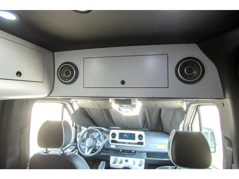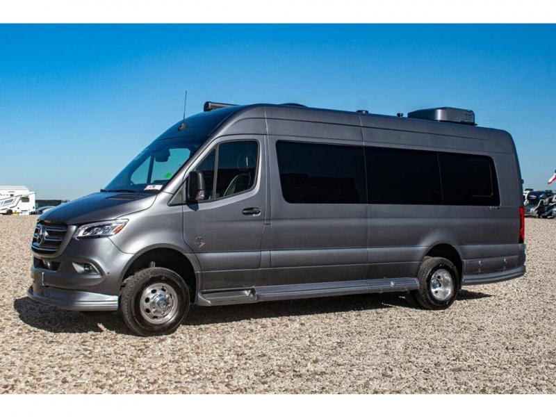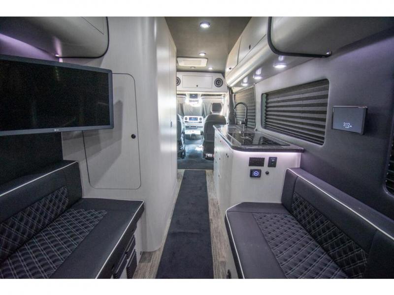 This luxury Class B RV measures approximately 24 feet 3 inches in length with the 170EXT sprinter chassis and all the features that come along with it such as the 2.0L High-Output Diesel, keyless start, rear view camera, pre-wiring for trailer hitch, load adaptive electronic stability program, hill start assist, crosswind assist, hold function, headlight assistant, active brake assist, color matched bumpers and side moldings.