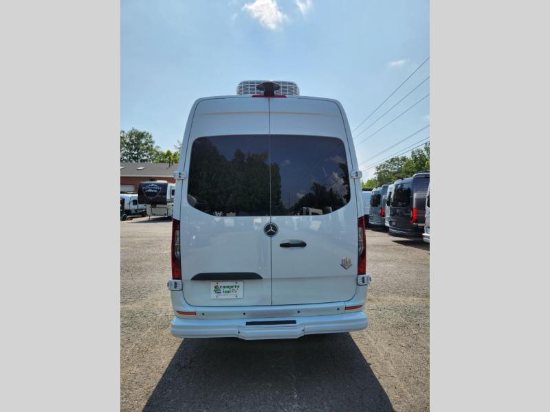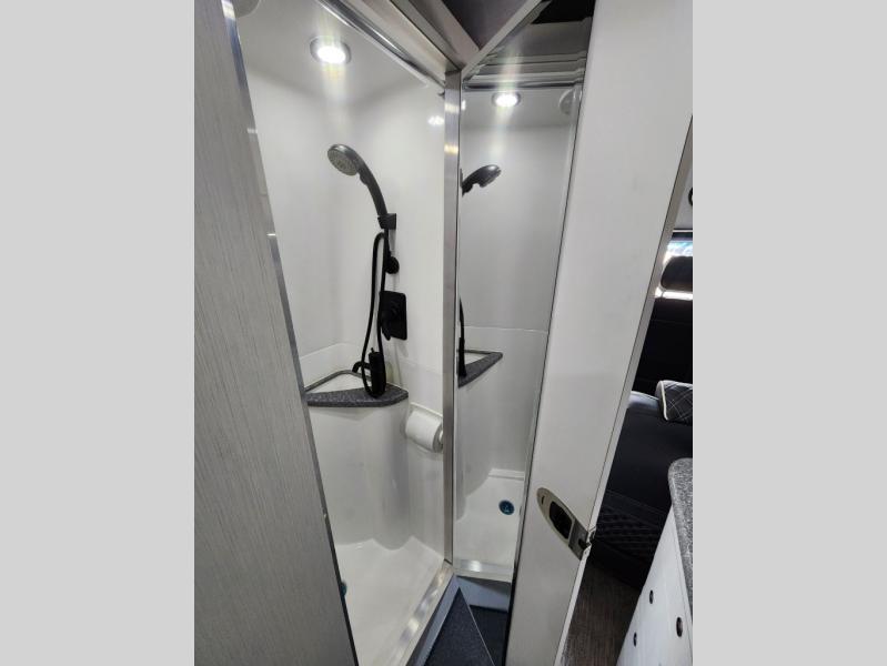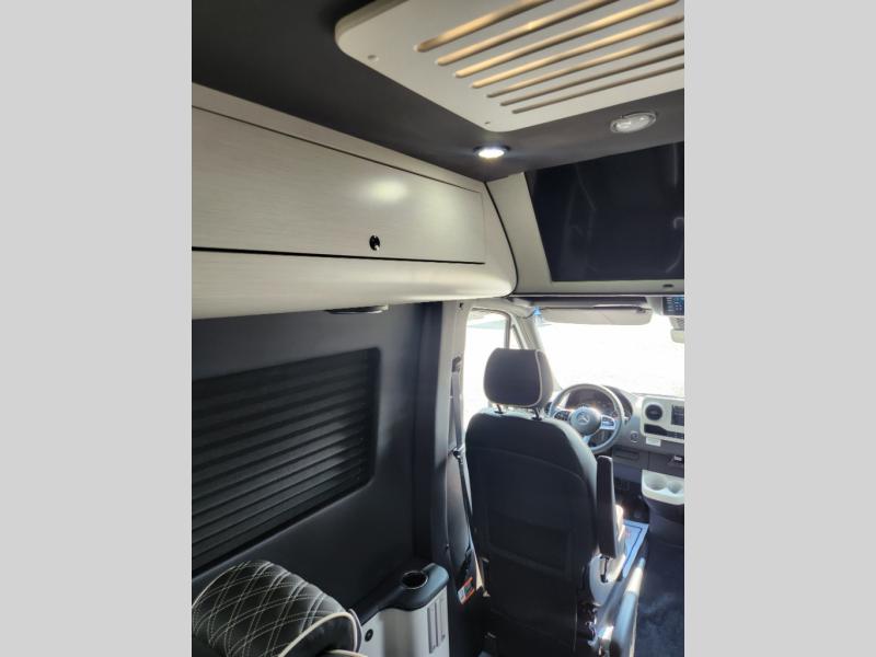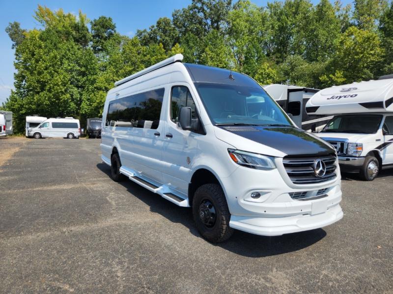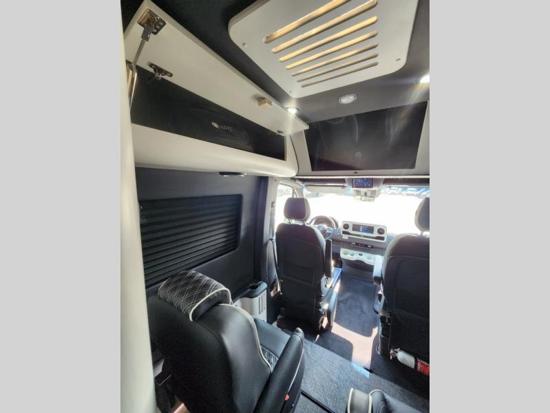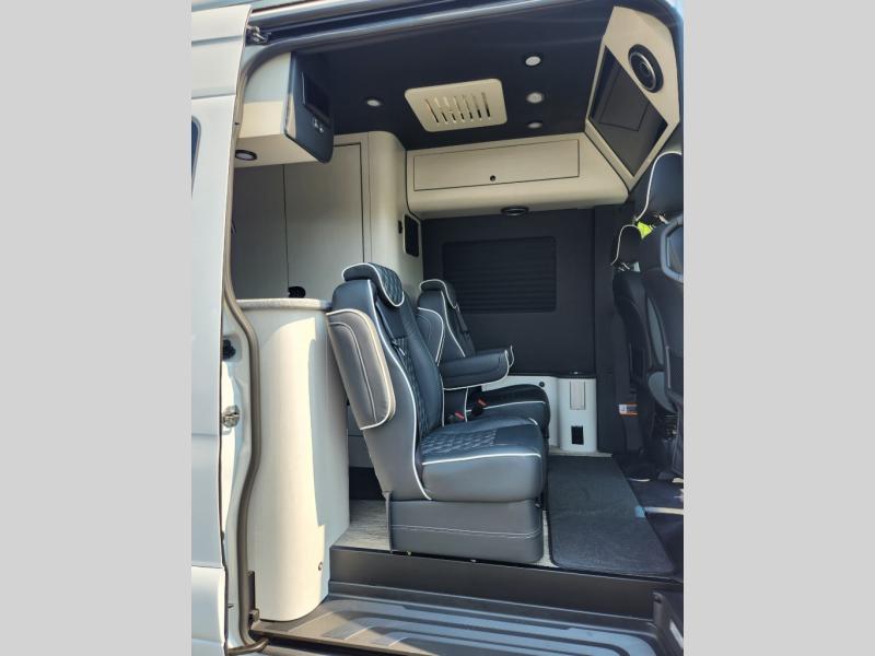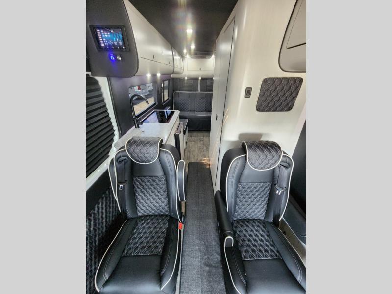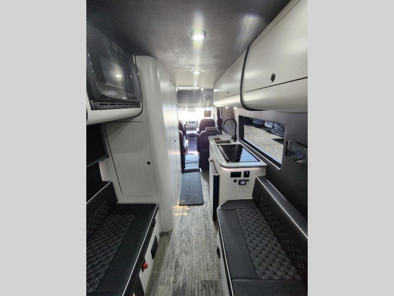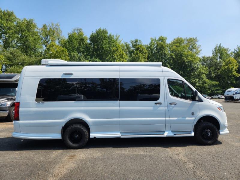 With any V-RV Class B diesel motorhome by OGV Luxury Coach, you will enjoy a smooth drive and innovative features to make van life easier than you think. They are constructed with the industry's best insulation package, including hush matts on all surfaces except the windows. The Anywhere Package comes with a 1080 Ah lithium battery, 3,000 watt inverter, 340 watts of auxiliary solar power, and a dual alternator with a Wakespeed Charge controller for endless power. You will also appreciate the Mercedes-Benz suspension bundle (RV1) with Sumo Springs, added safety features, and a rear view camera system for hassle-free parking. Automotive grade fabrics come standard inside, along with side and rear screen doors, custom woodwork with satin finish, multiple 110V dual outlets, and a rear JL audio entertainment system to ensure you'll never go bored. Each model is also available with AWD, which will be perfect if you plan to travel tougher terrain; see dealer for more details!