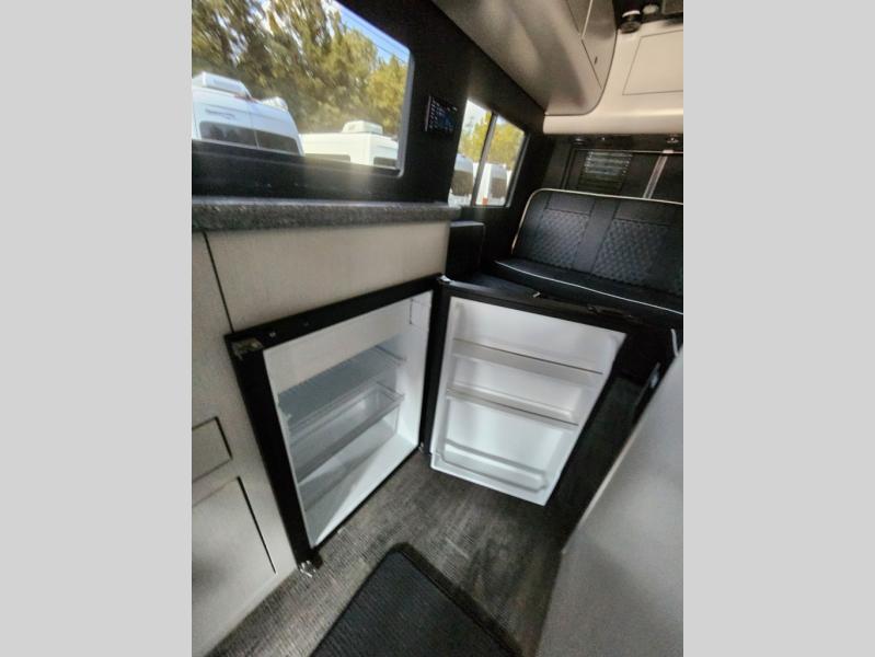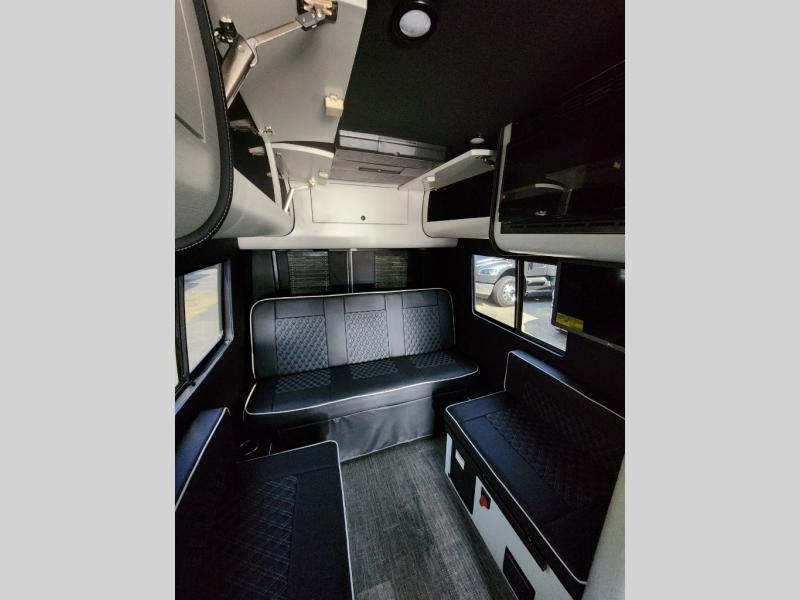Head across the state or country in this seven passenger coach! There is a rear lounge/fold out bed if two travelers plan to stay the night, and the wet bath will let you freshen up in the morning. A stainless steel microwave and double induction cooktop means you can cook inside instead of picking up take-out, and there is a 3.75 cu. ft. 12V refrigerator/freezer for food storage. Along with the lounge and four cab seats, there are also two jump seats and a lagun table that will be perfect for meal times or when playing cards.