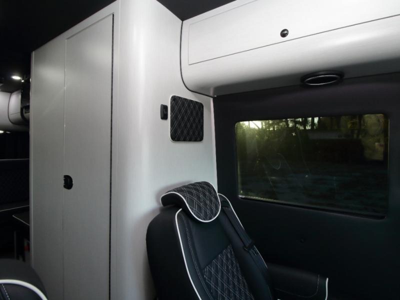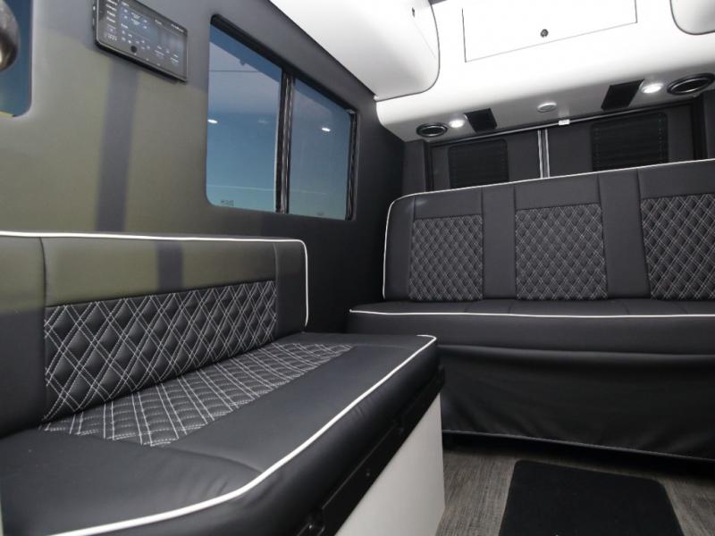 - Luxury Interior: Automotive-grade fabrics, custom satin-finish woodwork, side and rear screen doors, and multiple 110V dual outlets.