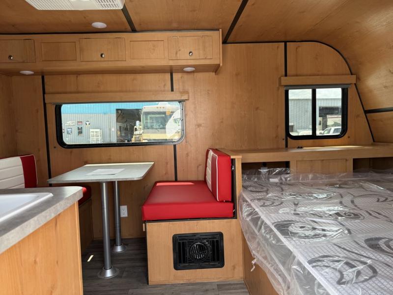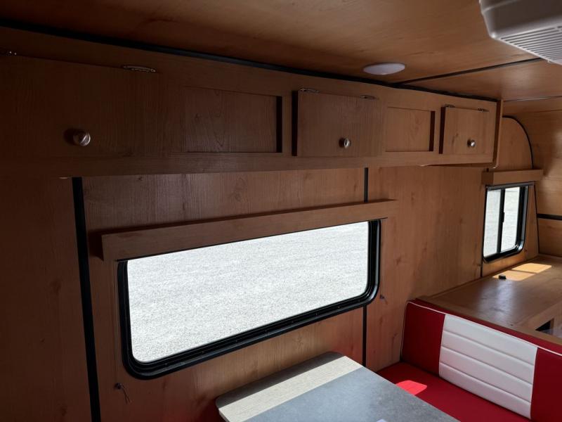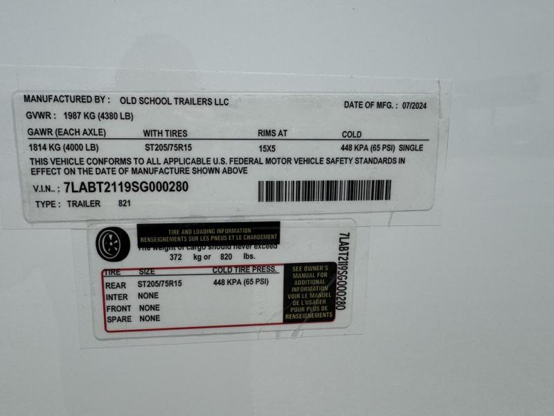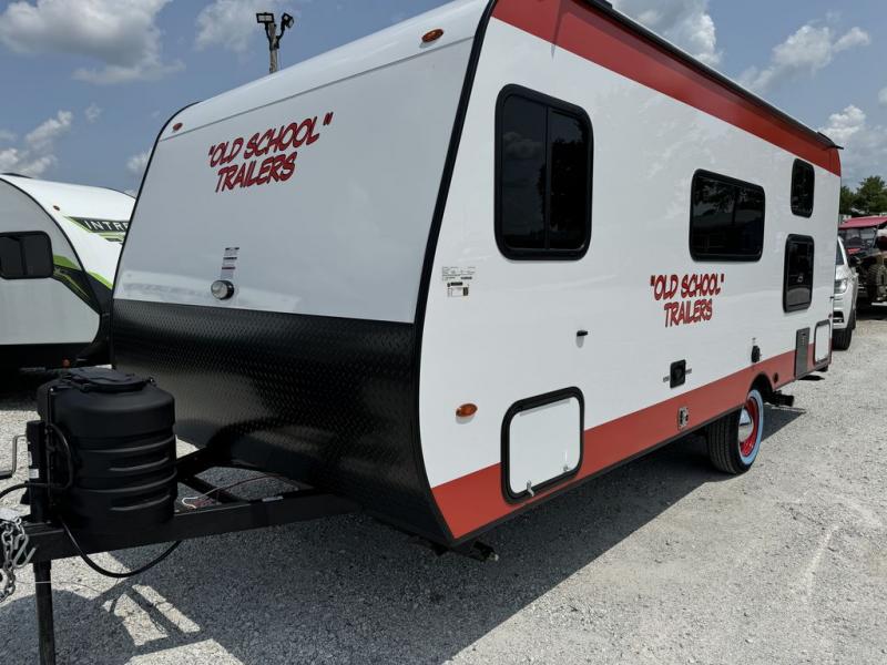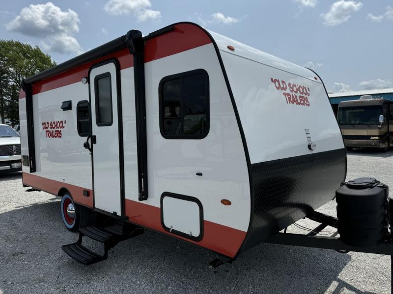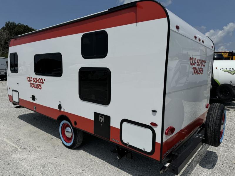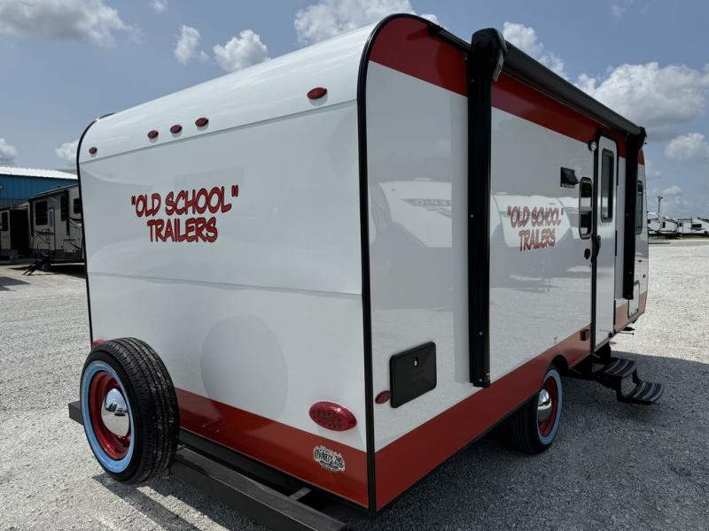 With any Old School Trailers travel trailer you will get to turn heads with the vintage style, and enjoy features you are accustom to having today! These trailers are built lightweight allowing you to tow with even the smaller SUVs depending on the trailer you choose. The aluminum cage construction with .030 metal is built on a Lippert frame with OSB flooring with Darco, OSB roof decking with Dicor covering, and Sol-R-Wal insulation. The tires include white walls with painted rims adding to the exterior's style, and the interior is just as impressive.