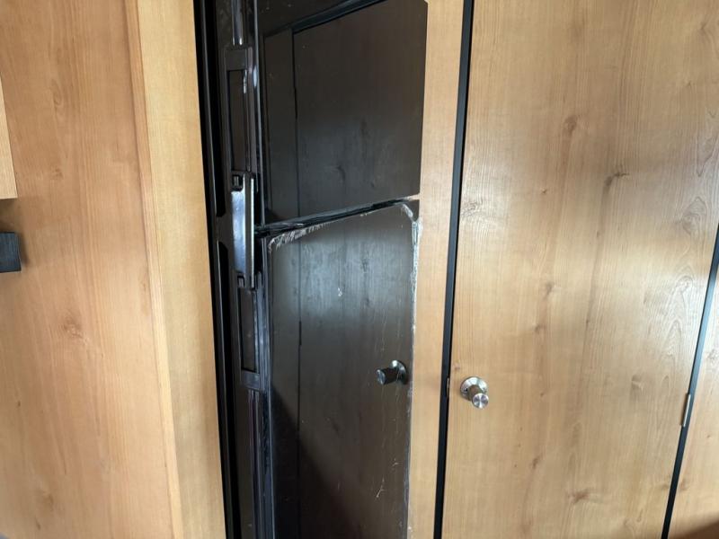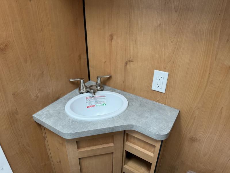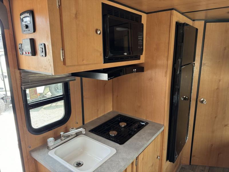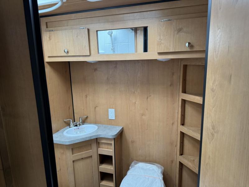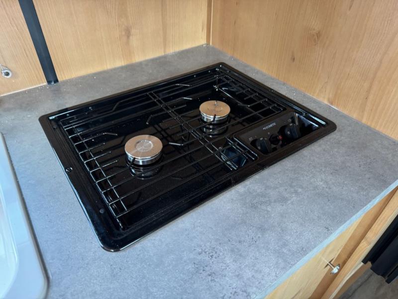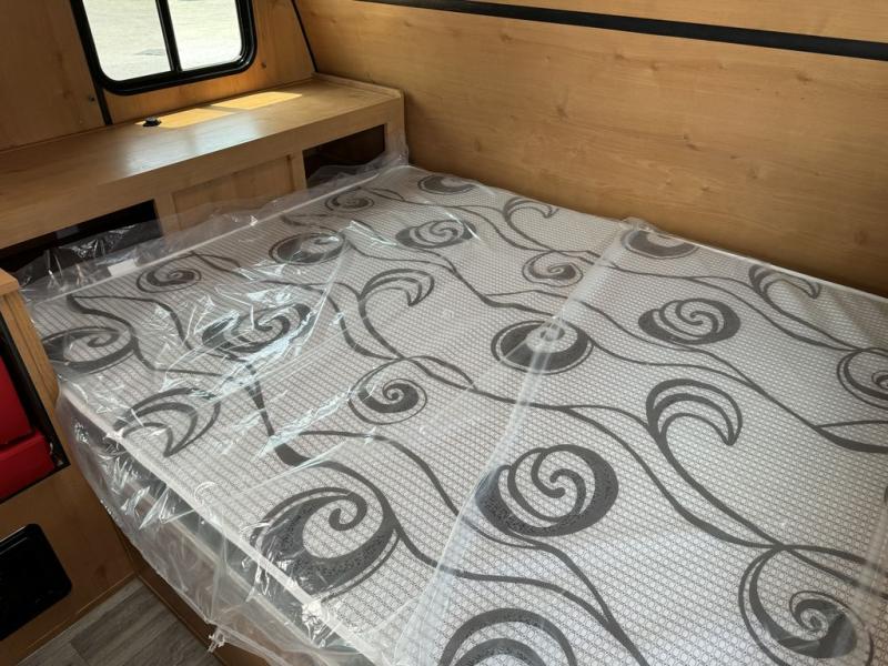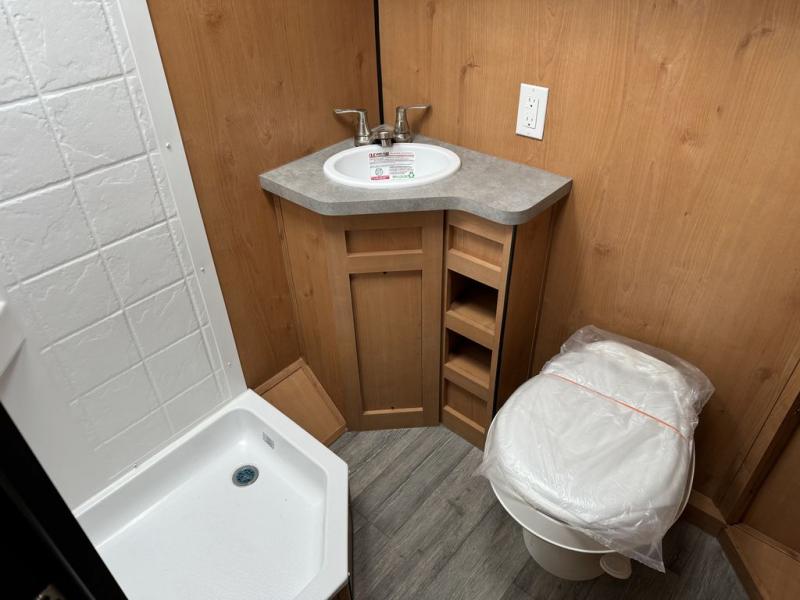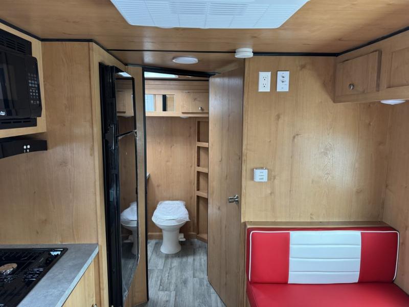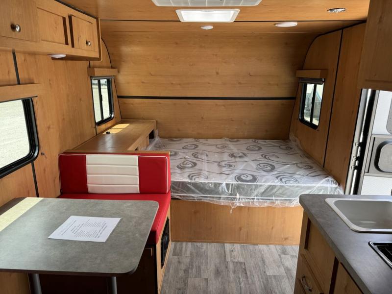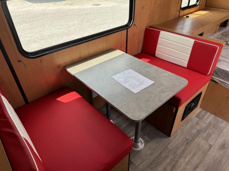 The kids are ready for fun and they will love having bunk beds to sleep on when camping! You will enjoy getting away in this stylish trailer that brings back memories of your childhood! The bunks are near the dry bathroom which is super convenient for the kids, and the 60" x 74" queen bed with storage is on the opposite side. When its time to eat, the cook will have a microwave, two-burner cooktop, a sink and a 6 cu. ft. refrigerator to utilize to keep everyone fed. There is a booth dinette for two to dine as well as one to sleep, and you all can enjoy eating outdoors under the power awning on your camp chairs while planning your day's activities.