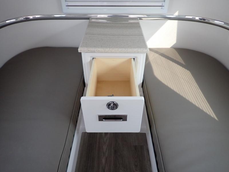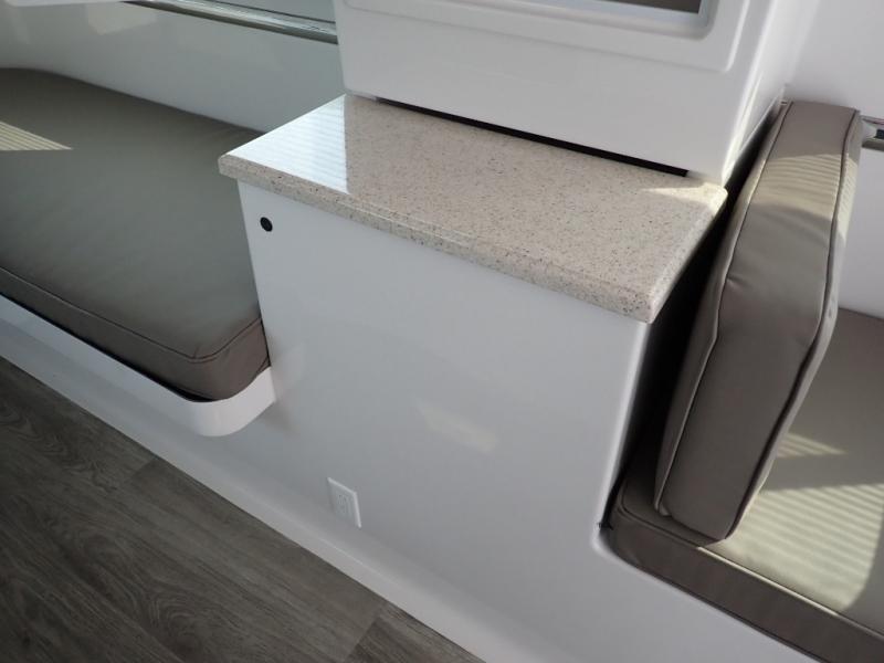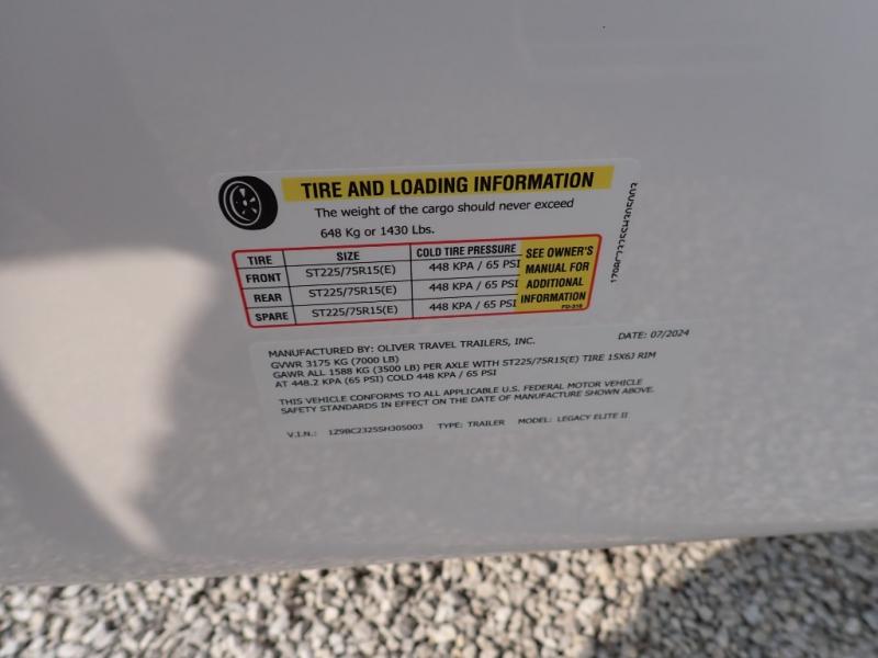 With any Legacy Elite ll by Oliver Travel Trailers, you will enjoy many standard features that are considered upgrades on other travel trailers. The full custom molded interior and exterior shells add durability, and the holding tanks and drain pipes are enclosed between shells with heat to diminish freezing. There is also a Dexter E-Z Flex suspension for smooth towing and a three point power stabilizing system for added stability at the campground. The interior includes fiber-granite countertops, day/night window treatments, and frosted upper cabinet doors in the cabin and bathroom. There are also multiple charging stations to keep you powered up, added safety features for your peace of mind, and a Maxxfan deluxe remote control RV ventilation system to ensure your comfort. Included on the Platinum models are the Lithium Pro Package with more power features, the Electronics Package to keep you connected as you camp, and the Outdoor Package with added outdoor features to make camping easier than ever; see dealer for more details!