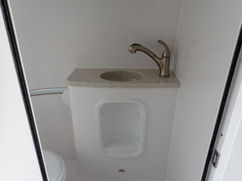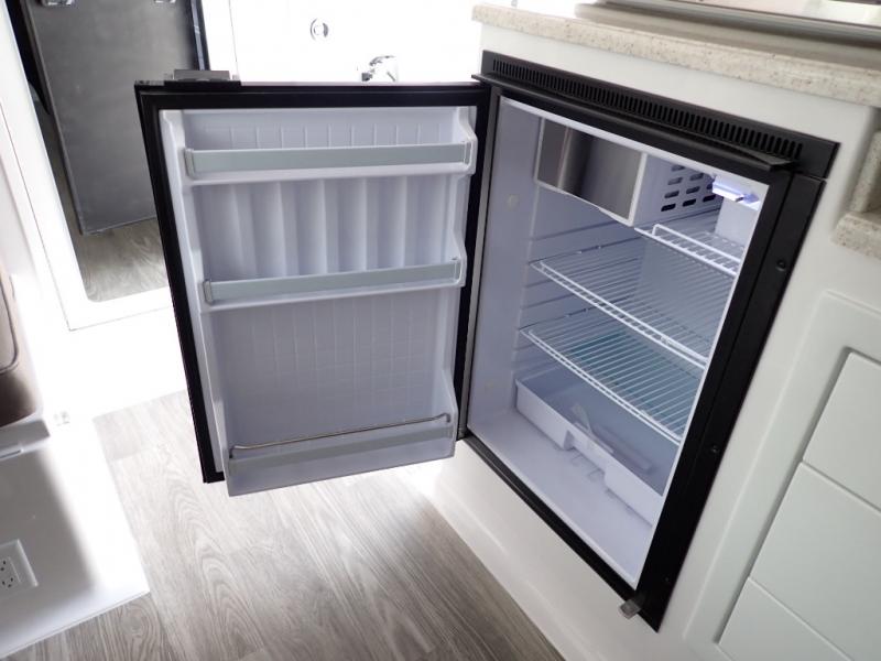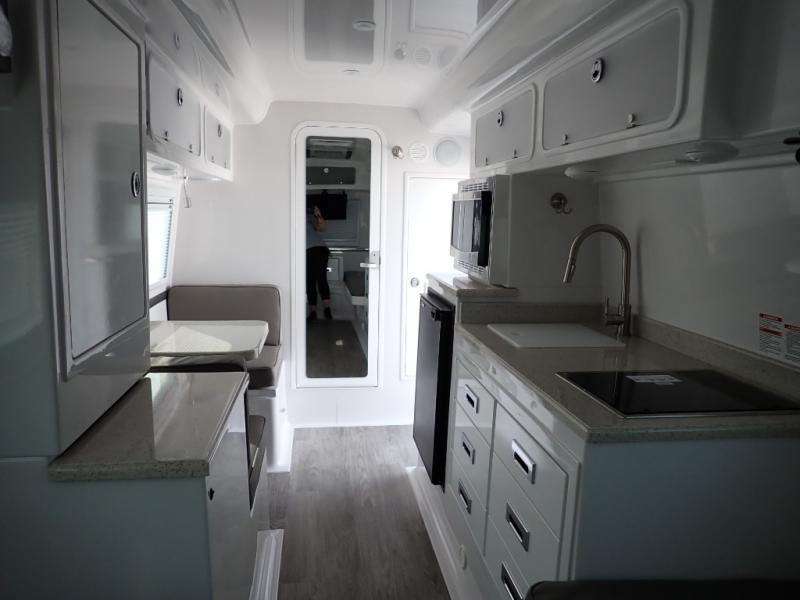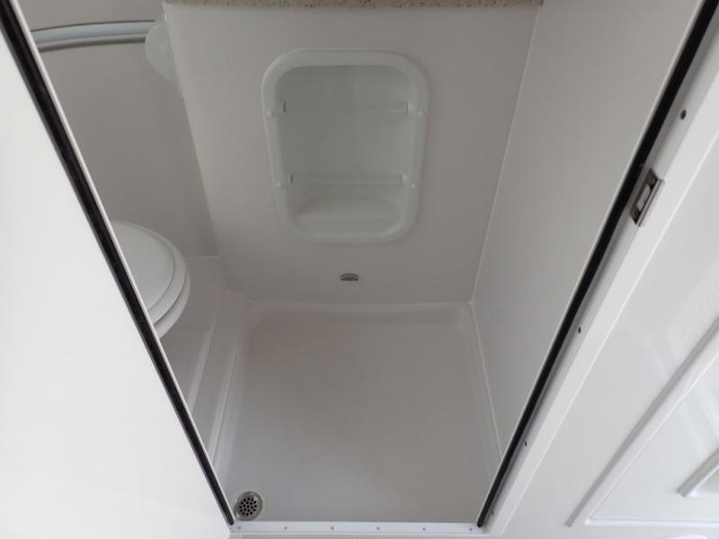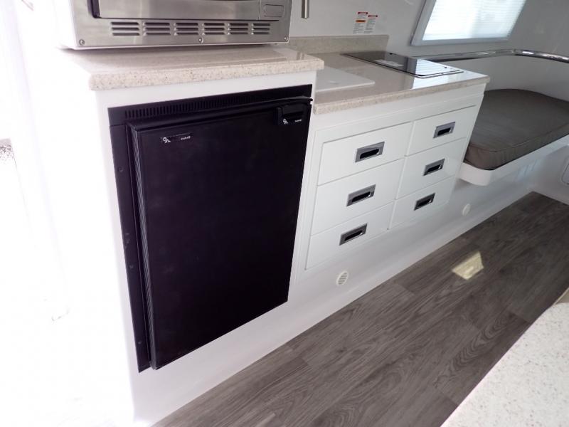 Choose your favorite campground and get ready for adventure in this travel trailer. The rear 75" x 30" beds can be set up for seating or sleeping space, and the side dinette converts to a 76" x 25" bed, allowing you to sleep three to four each night. A flush mount two burner stove and stainless steel microwave will let you make breakfast in the morning, and everyone can take turns cleaning up in the front wet bath. Here, you'll also find a brushed nickel faucet with a pull-out shower wand, a mirror tinted door, a towel bar and hook plus many more convenient features. You will also love the LED courtesy floor lights on this model, along with an LP ducted furnace, a lighted full-height wardrobe closet, and an AM/FM radio with USB, Bluetooth, and more!