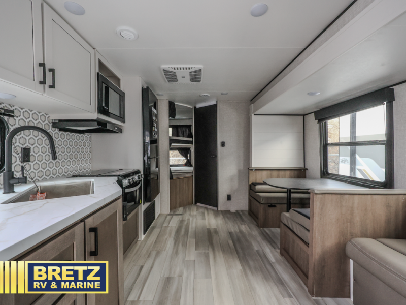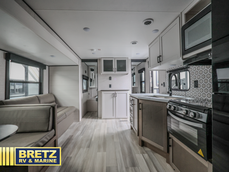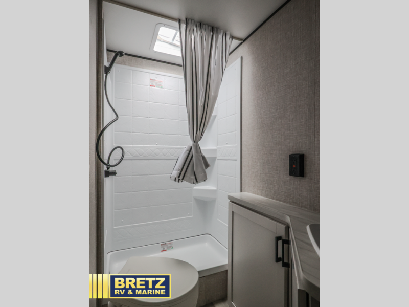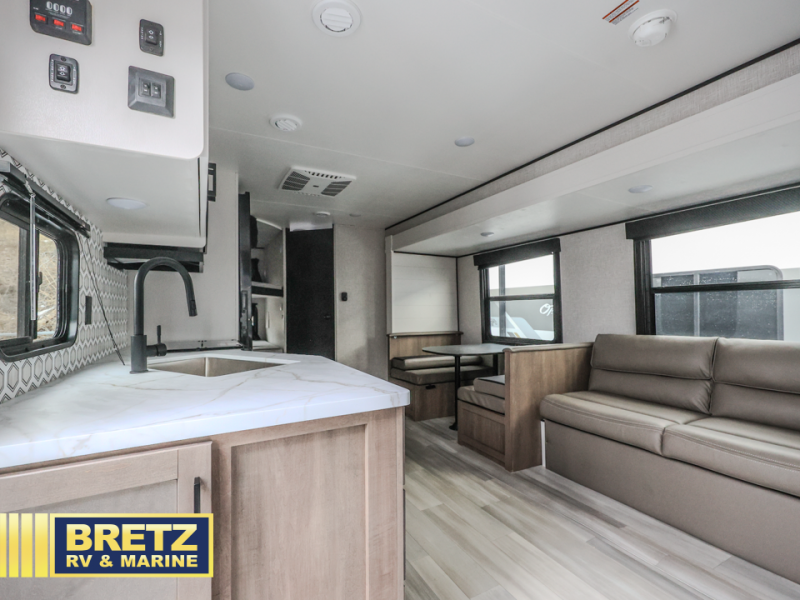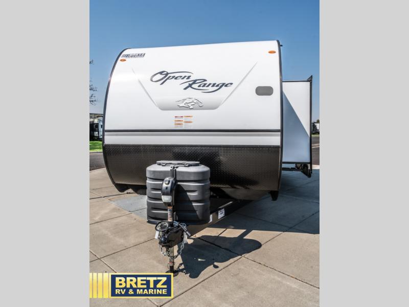 Take your camping to the next level with the Open Range Conventional Travel Trailer. The Open Range Conventional Travel Trailer uses the Magnum Roof™ System, making the roof fully walkable. It is topped with the PVC Roofing Membrane that reflects sunlight and does not absorb heat, making it easier to keep the trailer cool. The PVC Roofing Membrane also has a limited lifetime warranty. The Xtend Solar 1 Package is a standard feature on most of the Highland Ridge products, suppling enough power to keep the refrigerator running and the lights on. The solid swing down steps offer a wider top tread, making it easier and safer getting in and out of your unit. The kitchen is equipped with a 12V 8 cu. ft. refrigerator, providing more efficiency than a gas refrigerator. Since this is a smaller travel trailer, space and convenience is everything. We’ve added a flush mount range in the kitchen, with a glass top, giving you more counter space when the range is not in use. We use press membrane countertops throughout the kitchen and bath to help protect from water spills and leaks. Highland Ridge always has the customer in mind when designing our units.
