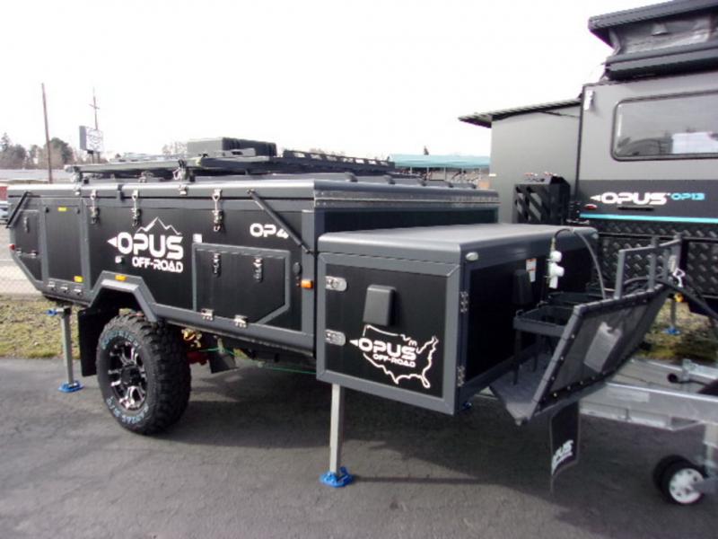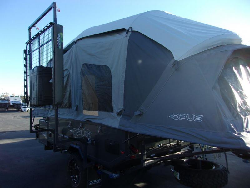 The Opus Camper OPUS folding pop-up camper is created for adventure! An all-terrain chassis, off-road tires, and independent coil suspension allow you to go wherever you want to go. The compact design makes it easy to take the OPUS down back roads and beaten paths, but once you settle on a destination, the OPUS opens up into an accommodating base camp for you and your fellow travelers. As you travel, you'll find that the extra storage components will be extremely useful.