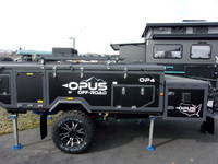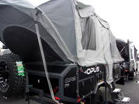 The Opus Camper OPUS folding pop-up camper is created for adventure! An all-terrain chassis, off-road tires, and independent coil suspension allow you to go wherever you want to go. The compact design makes it easy to take the OPUS down back roads and beaten paths, but once you settle on a destination, the OPUS opens up into an accommodating base camp for you and your fellow travelers. As you travel, you'll find that the extra storage components will be extremely useful.