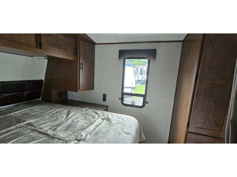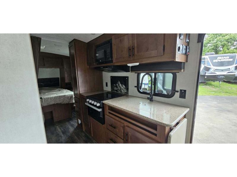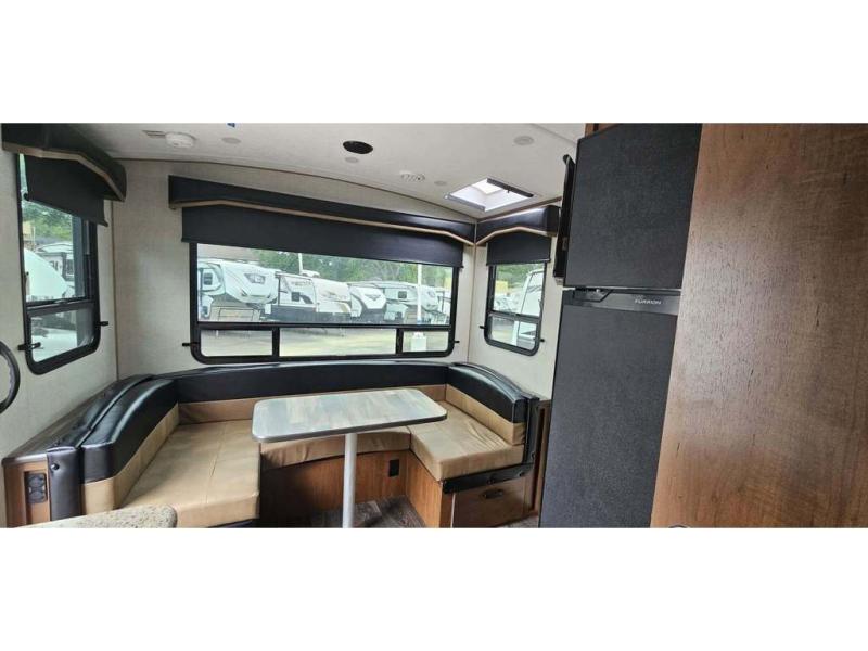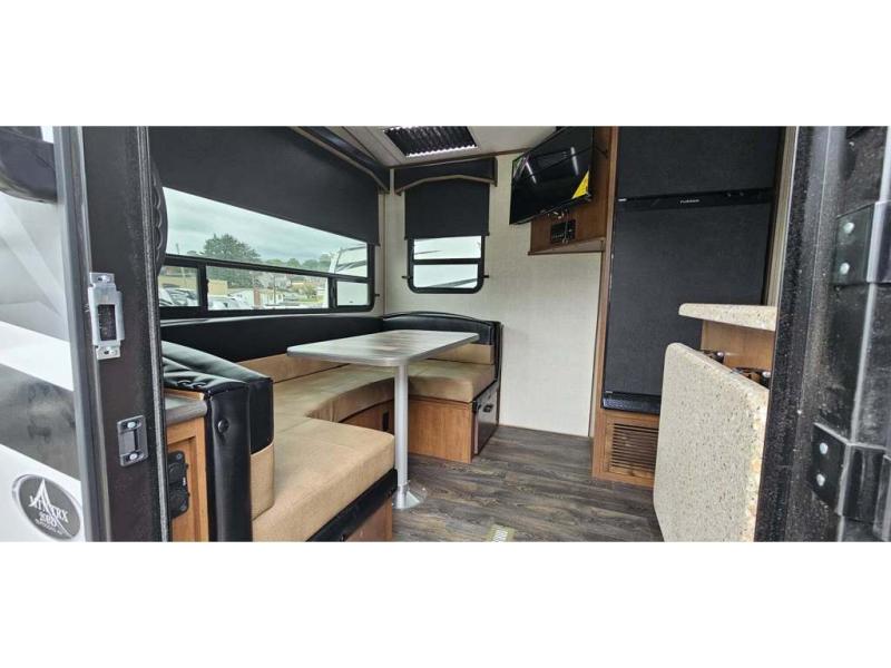 Load up your gear, clothing and food to start your journey exploring for the perfect spot to setup camp with this Back Country. You and your traveling companion will love the queen bed up front with privacy curtain, plus there is storage and USB ports on each side. If you are a family, one to two kiddos can sleep on the 40" x 84" U-shaped dinette in the rear that offers beautiful views out of the windows. The kitchen offers everything to keep everyone fed including a flip-up counter for extra work space. There is a full bathroom to keep everyone clean, plus a swing-out 32" TV for inside entertainment. And don't forget about the 17' awning when you want to relax outside with some protection from the sun.