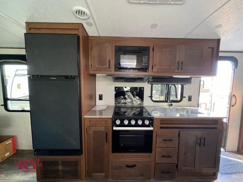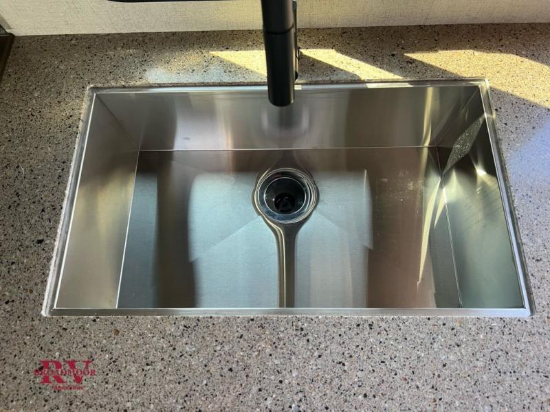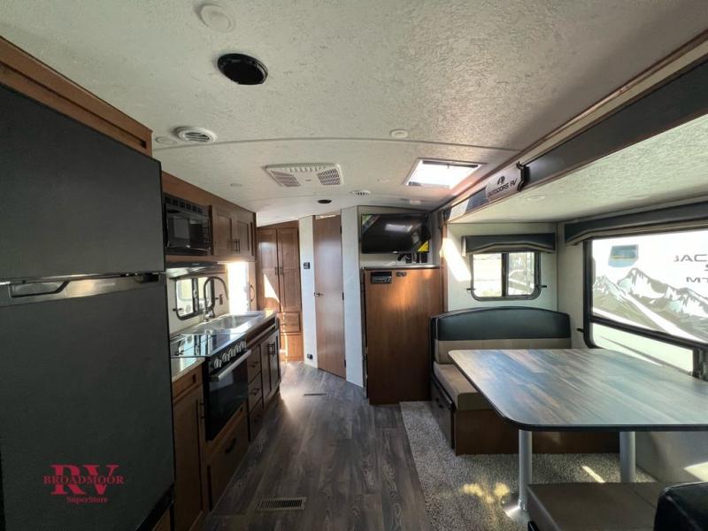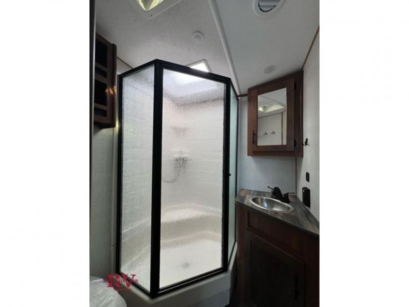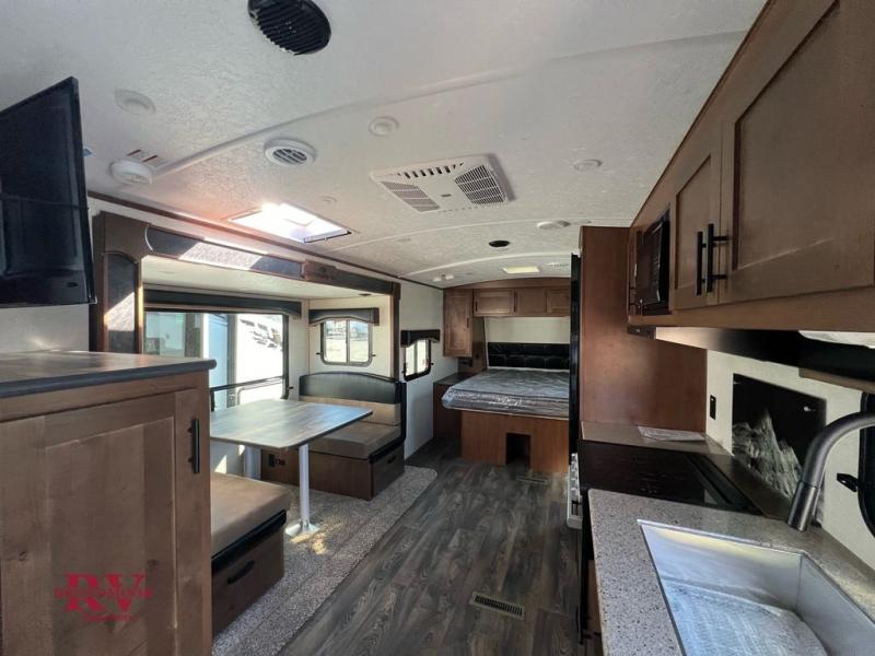 This is the perfect adventurist travel trailer with off-road and off-grid capability, plus the queen bed up front sleeps two and allows you to rest up after all the fun outdoors! You will find storage on each side as well as USB ports to keep your iPad and cell phones charged. The swing-out 32" TV can be viewed from pretty much anywhere giving you inside entertainment, and the mountain dinette slide out offers dining and sleeping space plus more interior floor space to move about. The cook can make meals in the galley kitchen with a flip-up counter, and everyone will stay refreshed with the full bathroom in the rear corner next to the handy entry closet.