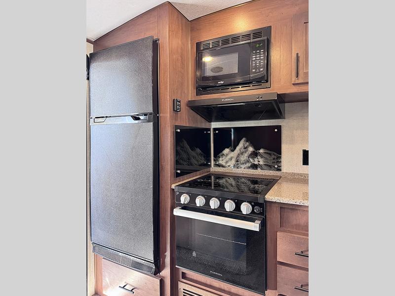 Each Back Country MTN TRX travel trailer by Outdoors RV is designed for camping off-grid plus you can go off-road, camp in national forest or even enjoy primitive style camping! Built with a custom-built cambered off-road HD 8' chassis, Mountain Extreme thermal pane windows, 16" Goodyear Endurance radial tires, plus more Climate Designed Four Seasons features allowing you to camp during any season. Some other standout features include a 24" Xtra tall power tongue jack, an HD full fiberglass front cap, and a Cummins Onan 3.6k on-board LP generator to keep your adventures going. Some of the interior highlights include a Mountain Comfort premium mattress, an easy access Home Defense bed safe, vaulted radius ceiling that provides approximately 5" of additional headroom for a spacious interior, a Bluetooth sound system, and LG solid surface kitchen countertops for style and easy care.