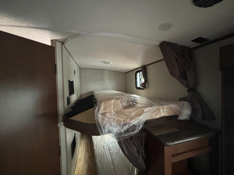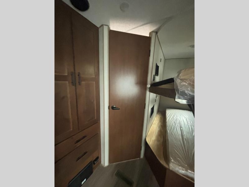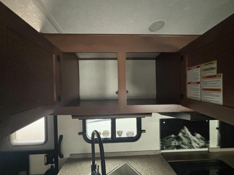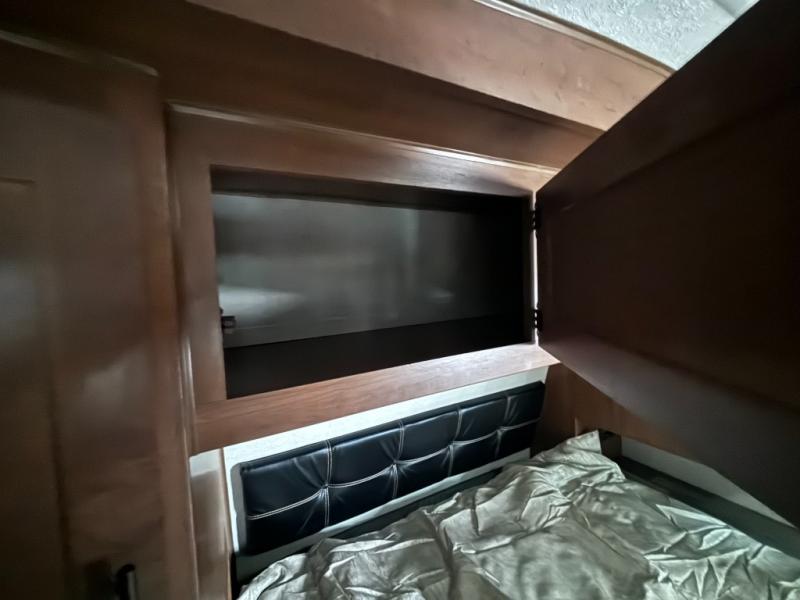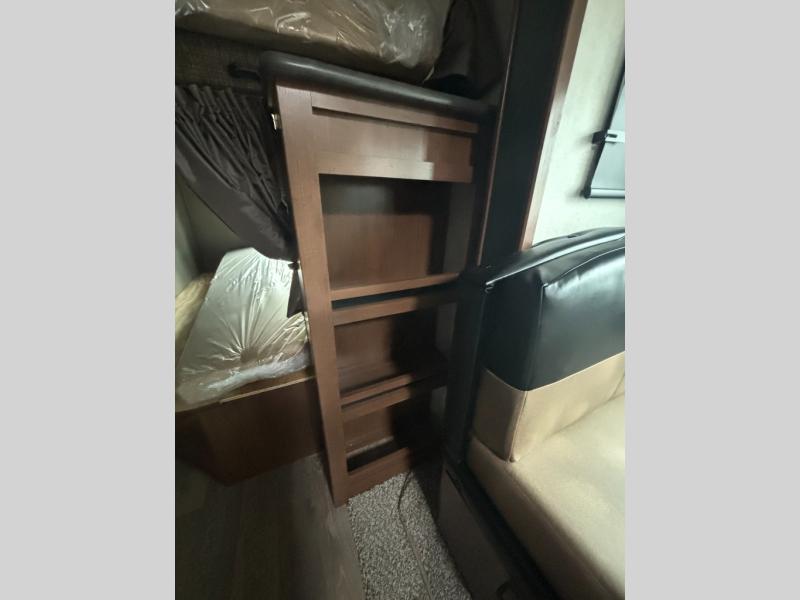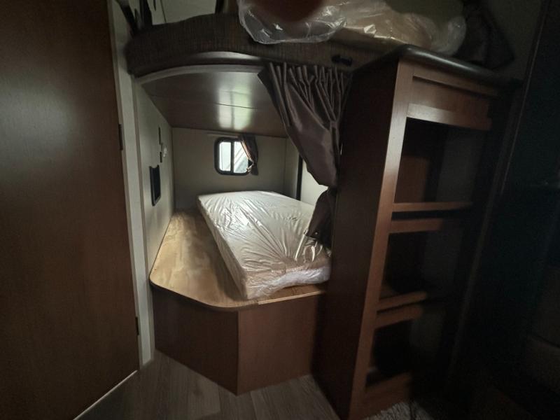 Outdoor enthusiast love this Back Country for many reasons when they camp at local campgrounds, state parks, off-grid and even at friend's ranches. The handy garage storage door allows you to place items from the exterior into the interior for safe travels under the bunks. The double-size bunks and ladder allow four to sleep each night, the mountain dinette and sleeper sofa offer three to four more spaces, and the owners will enjoy their own queen bed in the front private bedroom. The kitchen offers full amenities, the swing-out 40" TV offers inside entertainment, and the full bathroom will keep everyone clean after a fun day outdoors. There is more, step inside to see it all!