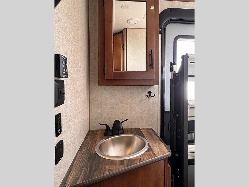 Each Back Country MTN TRX travel trailer by Outdoors RV is designed for camping off-grid plus you can go off-road, camp in national forest or even enjoy primitive style camping! Built with a custom-built cambered off-road HD 8' chassis, Mountain Extreme thermal pane windows, 16" Goodyear Endurance radial tires, plus more Climate Designed Four Seasons features allowing you to camp during any season. Some other standout features include a 24" Xtra tall power tongue jack, an HD full fiberglass front cap, and a Cummins Onan 3.6k on-board LP generator to keep your adventures going. Some of the interior highlights include a Mountain Comfort premium mattress, an easy access Home Defense bed safe, vaulted radius ceiling that provides approximately 5" of additional headroom for a spacious interior, a Bluetooth sound system, and LG solid surface kitchen countertops for style and easy care.