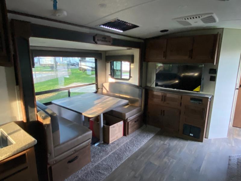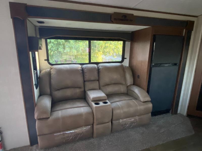 With any Black Stone Mountain Series travel trailer by Outdoors RV you will enjoy climate designed four seasons camping thanks to the thermal pane windows and the fully enclosed, heated, and insulated underbelly. The custom built chassis and rugged integrated A-frame are built for strength and durability, along with the rugged 2" bonded aluminum frame walls. Each model includes LG solid surface countertops, granite designed backsplash, vaulted radius ceilings, and a mountain comfort premium mattress for all-around comfort. You will also love the XL panoramic slide out windows and the dual pane living room skylight with a shade to let natural light in!