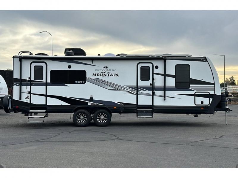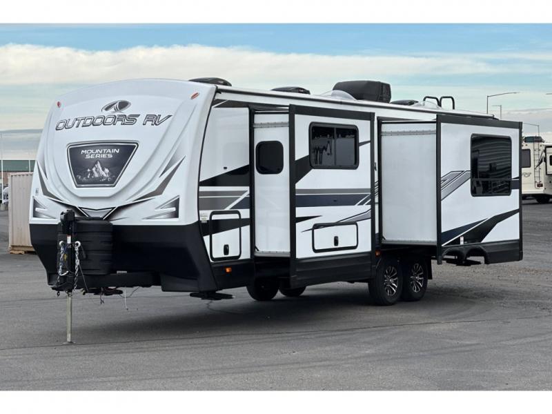 With any Black Stone Mountain Series travel trailer by Outdoors RV you will enjoy climate designed four seasons camping thanks to the thermal pane windows and the fully enclosed, heated, and insulated underbelly. The custom built chassis and rugged integrated A-frame are built for strength and durability, along with the rugged 2" bonded aluminum frame walls. Each model includes LG solid surface countertops, granite designed backsplash, vaulted radius ceilings, and a mountain comfort premium mattress for all-around comfort. You will also love the XL panoramic slide out windows and the dual pane living room skylight with a shade to let natural light in!