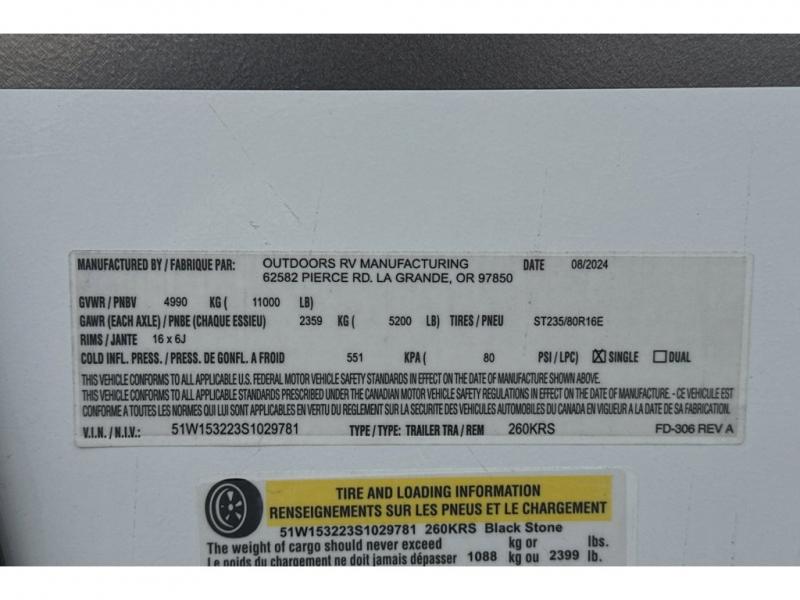 New 2025 Outdoors RV Black Stone Mountain Series 260KRS Travel Trailer