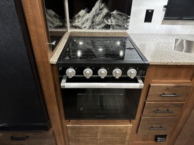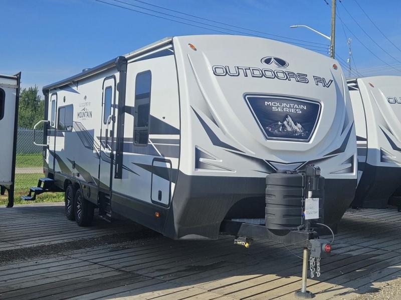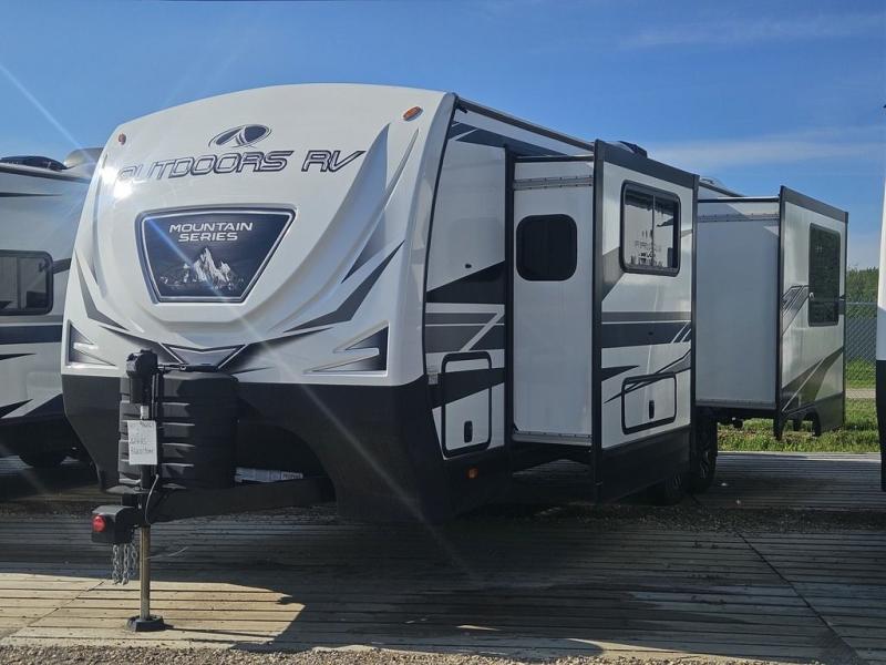 With any Black Stone Mountain Series travel trailer by Outdoors RV you will enjoy climate designed four seasons camping thanks to the thermal pane windows and the fully enclosed, heated, and insulated underbelly. The custom built chassis and rugged integrated A-frame are built for strength and durability, along with the rugged 2" bonded aluminum frame walls. Each model includes LG solid surface countertops, granite designed backsplash, vaulted radius ceilings, and a mountain comfort premium mattress for all-around comfort. You will also love the XL panoramic slide out windows and the dual pane living room skylight with a shade to let natural light in!