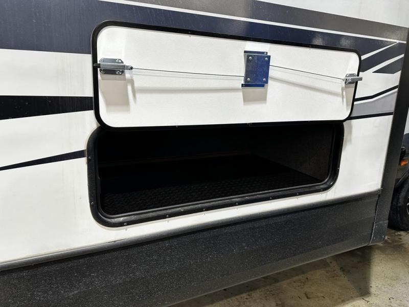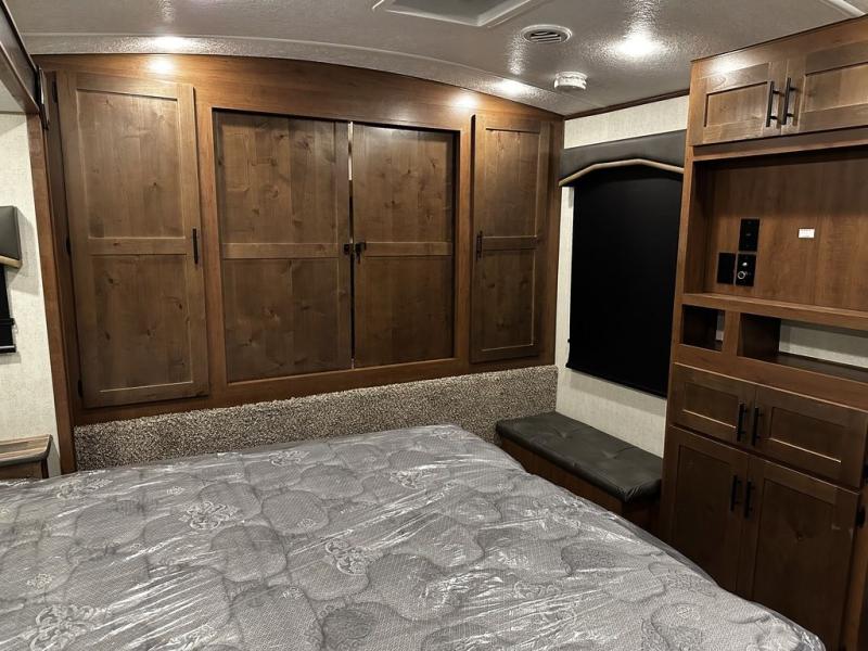 Added Options: Mountain Storage System /2" Rec. Hitch & Toy-Lok), 12V Heat Pad (Fresh Water Tank), Maxx-Air Deluxe Vent Fans (Bed/Bath/Kitchen), 50AMP SERV. w/Bedroom Pre Wire for 2nd A/C, Dual Motor Power Stab. Jacks (PSX2 System N/A W/OPT 2, Off Grid Battery Rack Capacity 4 Batteries, Theatre Seating w/Recliners IPO Sleeper Sofa.