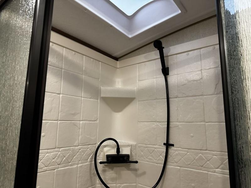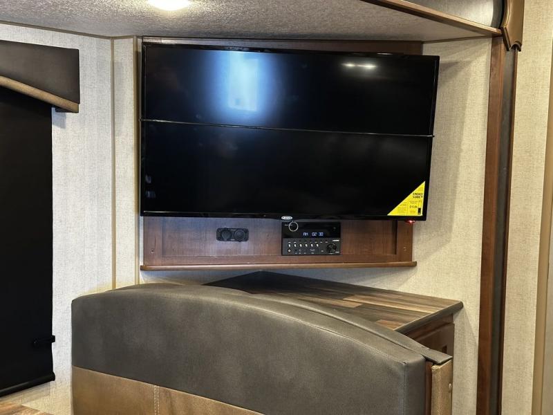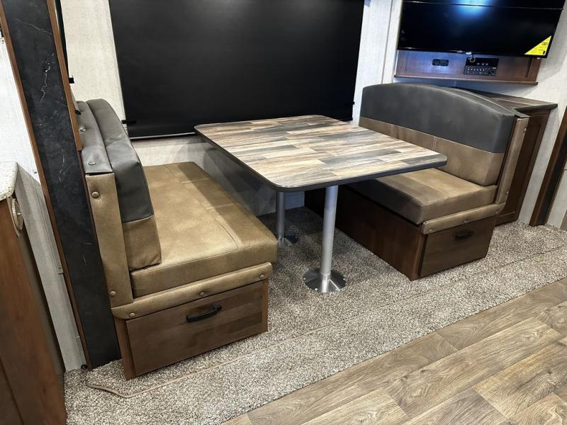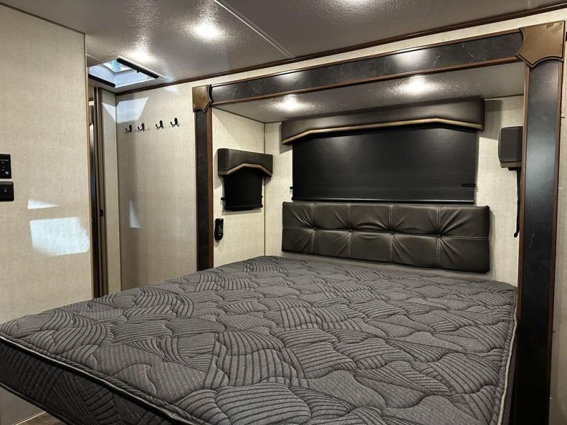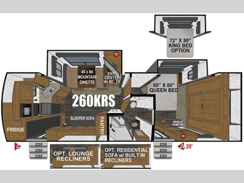 Added Options: Mountain Storage System /2" Rec. Hitch & Toy-Lok), 12V Heat Pad (Fresh Water Tank), Maxx-Air Deluxe Vent Fans (Bed/Bath/Kitchen), 50AMP SERV. w/Bedroom Pre Wire for 2nd A/C, Dual Motor Power Stab. Jacks (PSX2 System N/A W/OPT 2, Off Grid Battery Rack Capacity 4 Batteries, 72"x 80" Upgraded King Bed, Theatre Seating w/Recliners IPO Sleeper Sofa