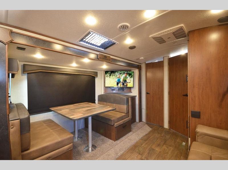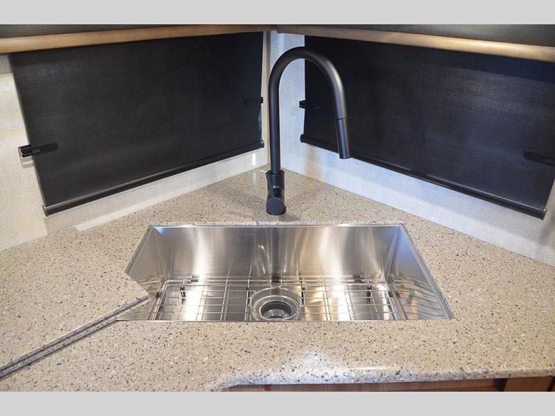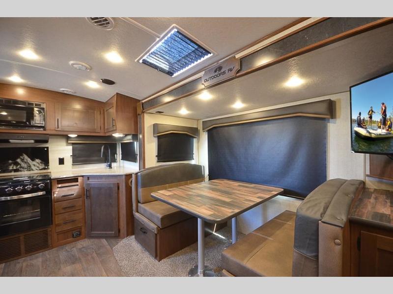 With any Black Stone Mountain Series travel trailer by Outdoors RV you will enjoy climate designed four seasons camping thanks to the thermal pane windows and the fully enclosed, heated, and insulated underbelly. The custom built chassis and rugged integrated A-frame are built for strength and durability, along with the rugged 2" bonded aluminum frame walls. Each model includes LG solid surface countertops, granite designed backsplash, vaulted radius ceilings, and a mountain comfort premium mattress for all-around comfort. You will also love the XL panoramic slide out windows and the dual pane living room skylight with a shade to let natural light in!