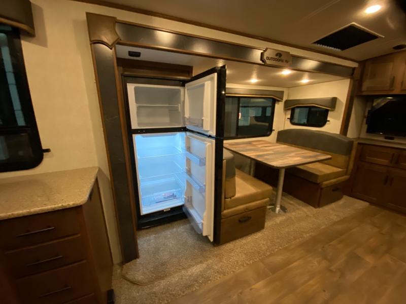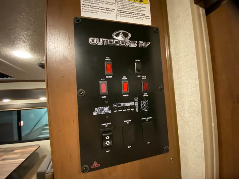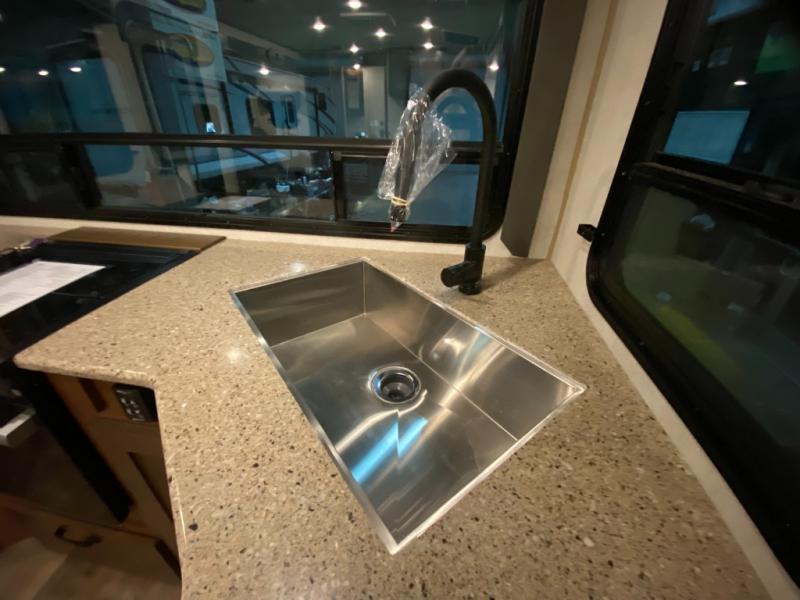 With any Black Stone Mountain Series travel trailer by Outdoors RV you will enjoy climate designed four seasons camping thanks to the thermal pane windows and the fully enclosed, heated, and insulated underbelly. The custom built chassis and rugged integrated A-frame are built for strength and durability, along with the rugged 2" bonded aluminum frame walls. Each model includes LG solid surface countertops, granite designed backsplash, vaulted radius ceilings, and a mountain comfort premium mattress for all-around comfort. You will also love the XL panoramic slide out windows and the dual pane living room skylight with a shade to let natural light in!