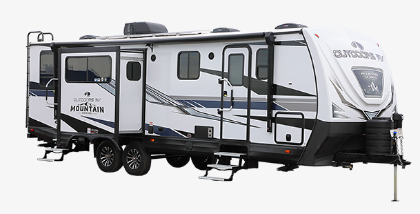 With any Black Stone Mountain Series travel trailer by Outdoors RV you will enjoy climate designed four seasons camping thanks to the thermal pane windows and the fully enclosed, heated, and insulated underbelly. The custom built chassis and rugged integrated A-frame are built for strength and durability, along with the rugged 2" bonded aluminum frame walls. Each model includes LG solid surface countertops, granite designed backsplash, vaulted radius ceilings, and a mountain comfort premium mattress for all-around comfort. You will also love the XL panoramic slide out windows and the dual pane living room skylight with a shade to let natural light in!