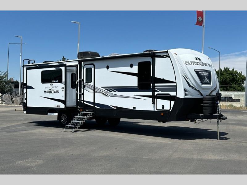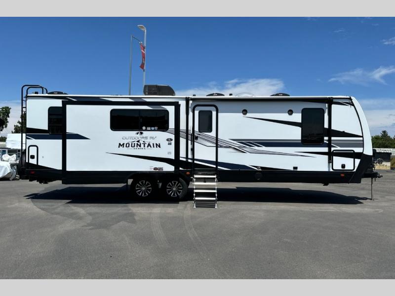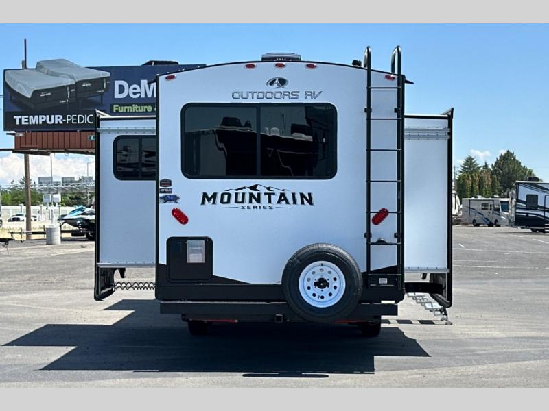 With any Black Stone Mountain Series travel trailer by Outdoors RV you will enjoy climate designed four seasons camping thanks to the thermal pane windows and the fully enclosed, heated, and insulated underbelly. The custom built chassis and rugged integrated A-frame are built for strength and durability, along with the rugged 2" bonded aluminum frame walls. Each model includes LG solid surface countertops, granite designed backsplash, vaulted radius ceilings, and a mountain comfort premium mattress for all-around comfort. You will also love the XL panoramic slide out windows and the dual pane living room skylight with a shade to let natural light in!