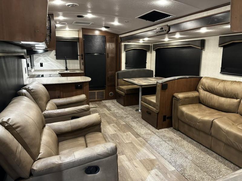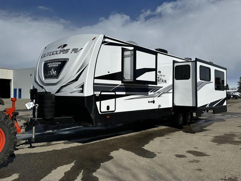 With any Black Stone Mountain Series travel trailer by Outdoors RV you will enjoy climate designed four seasons camping thanks to the thermal pane windows and the fully enclosed, heated, and insulated underbelly. The custom built chassis and rugged integrated A-frame are built for strength and durability, along with the rugged 2" bonded aluminum frame walls. Each model includes LG solid surface countertops, granite designed backsplash, vaulted radius ceilings, and a mountain comfort premium mattress for all-around comfort. You will also love the XL panoramic slide out windows and the dual pane living room skylight with a shade to let natural light in!