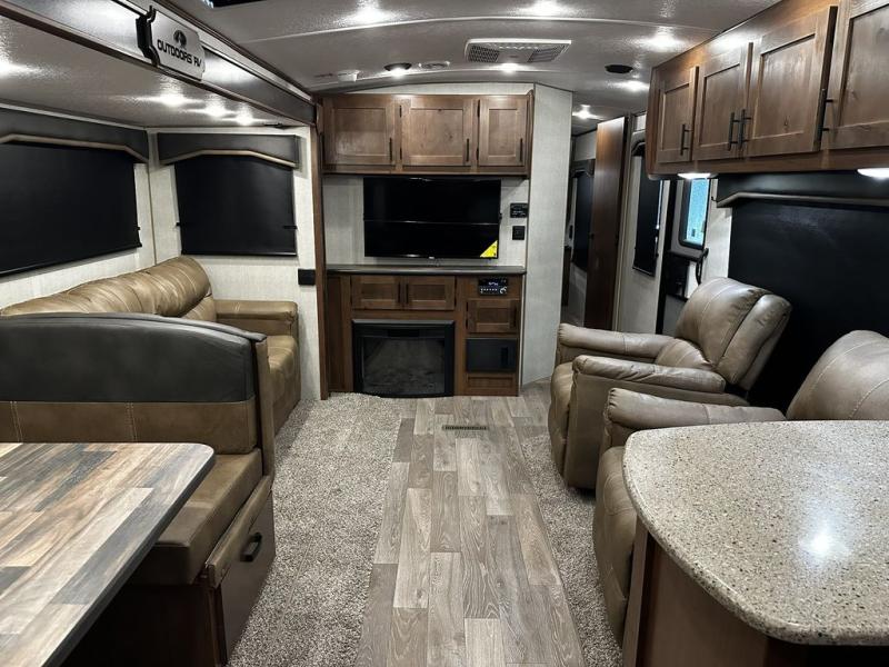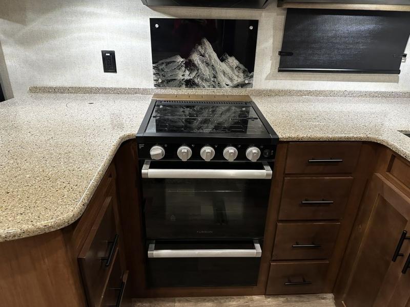 Added Options: Mountain Storage System /2" Rec. Hitch & Toy-Lok), 12V Heat Pad (Fresh Water Tank), Living Room Fireplace, Deluxe Vent Fans (Bed/Bath/Kitchen), 50AMP SERV. w/Bedroom Pre Wire for 2nd A/C, Dual Motor Power Stab. Jacks (PSX2 System N/A W/OPT 2, Off Grid Battery Rack Capacity 4 Batteries, 60"x 80"Premium Mattress.