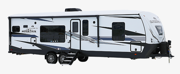 With any Black Stone Mountain Series travel trailer by Outdoors RV you will enjoy climate designed four seasons camping thanks to the thermal pane windows and the fully enclosed, heated, and insulated underbelly. The custom built chassis and rugged integrated A-frame are built for strength and durability, along with the rugged 2" bonded aluminum frame walls. Each model includes LG solid surface countertops, granite designed backsplash, vaulted radius ceilings, and a mountain comfort premium mattress for all-around comfort. You will also love the XL panoramic slide out windows and the dual pane living room skylight with a shade to let natural light in!