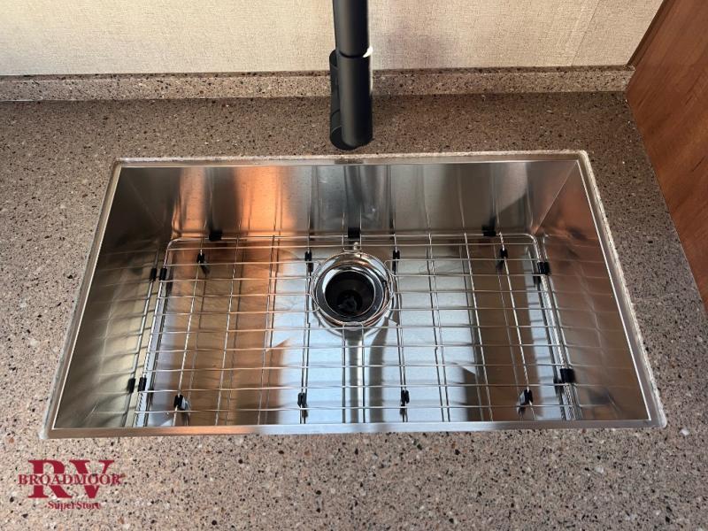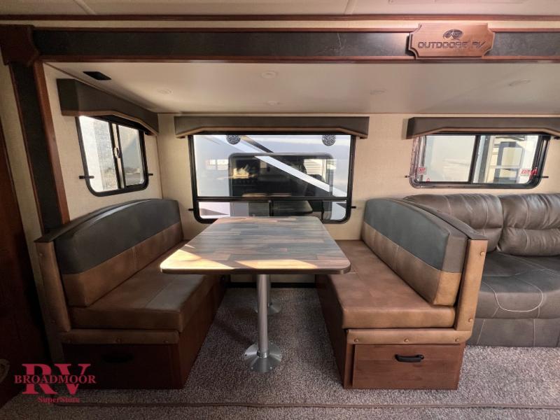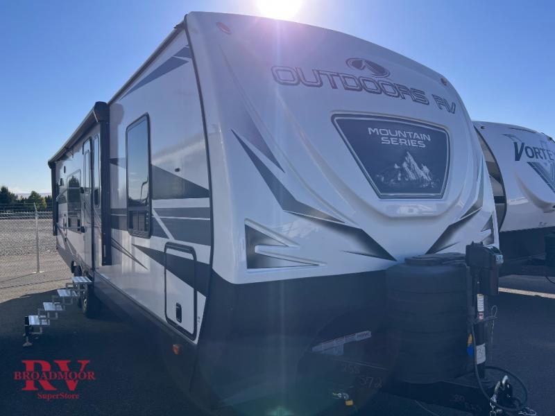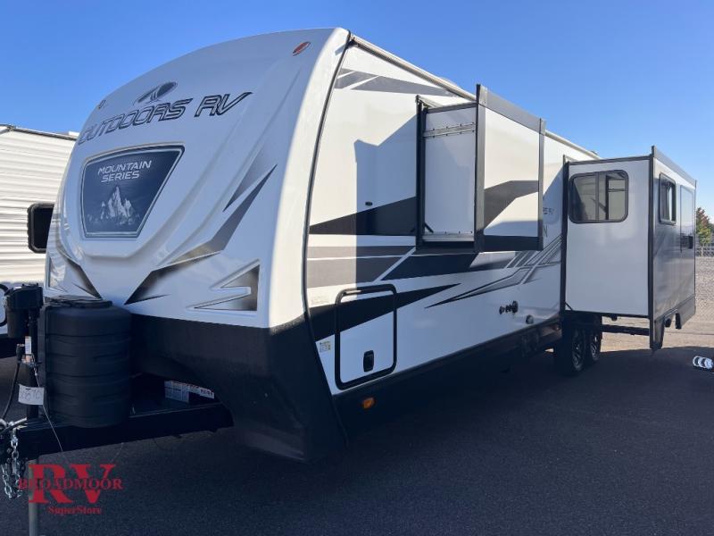 With any Black Stone Mountain Series travel trailer by Outdoors RV you will enjoy climate designed four seasons camping thanks to the thermal pane windows and the fully enclosed, heated, and insulated underbelly. The custom built chassis and rugged integrated A-frame are built for strength and durability, along with the rugged 2" bonded aluminum frame walls. Each model includes LG solid surface countertops, granite designed backsplash, vaulted radius ceilings, and a mountain comfort premium mattress for all-around comfort. You will also love the XL panoramic slide out windows and the dual pane living room skylight with a shade to let natural light in!