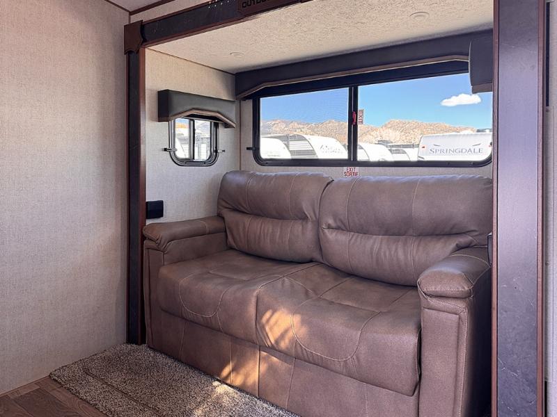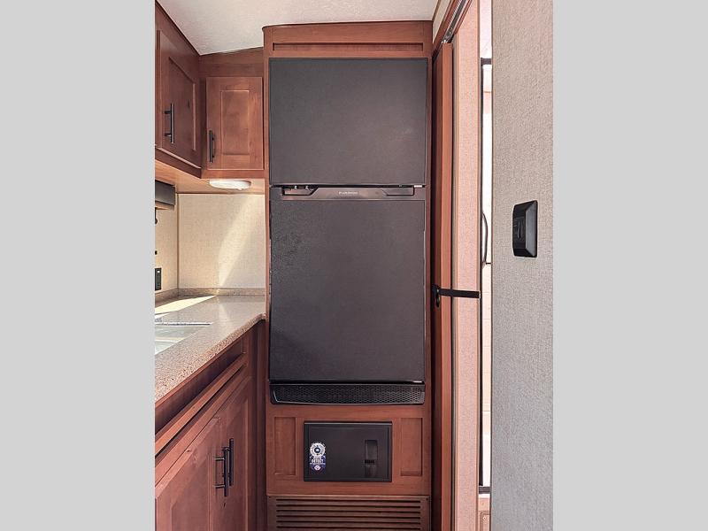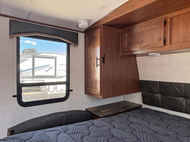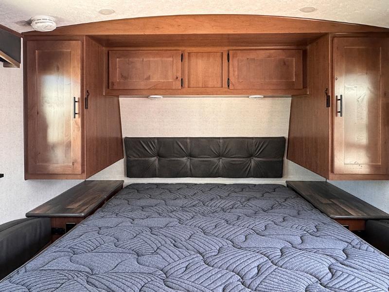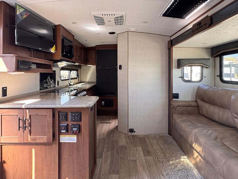 Each Creek Side Mountain Series travel trailer by Outdoors RV is designed for mountain tough four seasons camping for all your adventures. You'll find mountain extreme thermal pane windows, triple layered four seasons roof insulation, and a unique heated, insulated holding tank design. The compact design is compatible for light duty tow vehicles and smaller campsites, so you may not even need to purchase a new vehicle to start camping. Each model includes LG solid surface countertops, ultra leather furniture, and XL panoramic slide out windows for great outdoor views. These travel trailers also feature a mountain comfort premium mattress, 12V USB ports on either side of the bed, and XL bed nightstands for convenient storage.