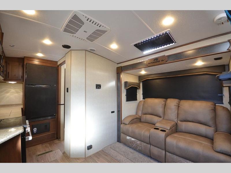 Each Creek Side Mountain Series travel trailer by Outdoors RV is designed for mountain tough four seasons camping for all your adventures. You'll find mountain extreme thermal pane windows, triple layered four seasons roof insulation, and a unique heated, insulated holding tank design. The compact design is compatible for light duty tow vehicles and smaller campsites, so you may not even need to purchase a new vehicle to start camping. Each model includes LG solid surface countertops, ultra leather furniture, and XL panoramic slide out windows for great outdoor views. These travel trailers also feature a mountain comfort premium mattress, 12V USB ports on either side of the bed, and XL bed nightstands for convenient storage.