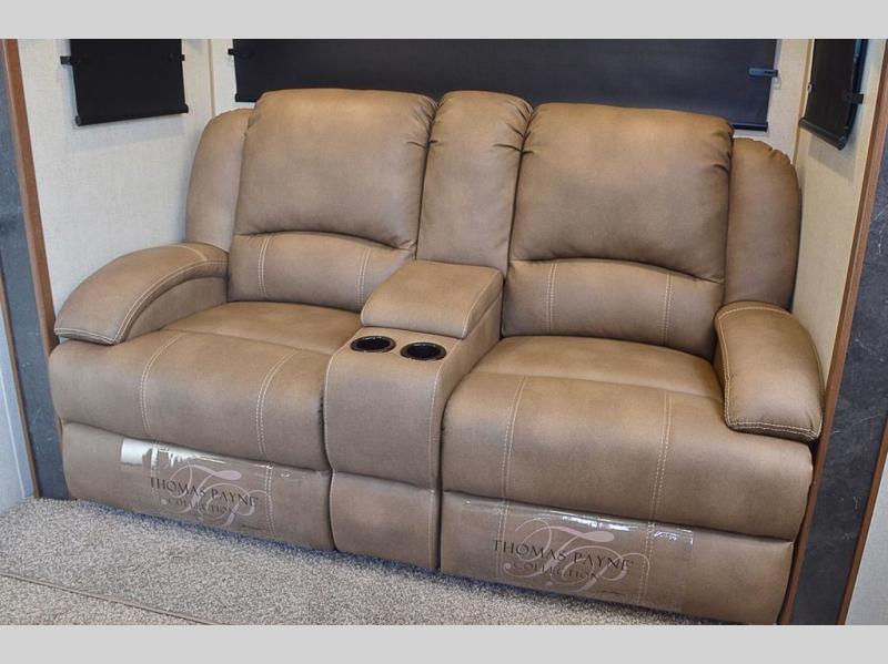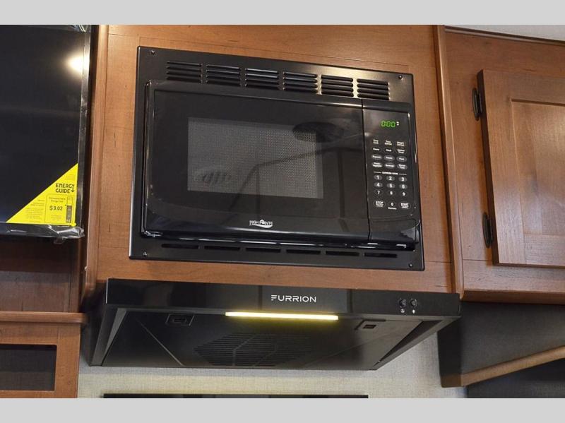 Versatility and comfort is found in this spacious travel trailer. There is a queen Murphy bed up front that can fold away into the wall so you can dine at the fold down booth dinette. The residential sofa with built-in recliners will be the perfect place to relax as you watch a movie on the swing out 32" TV, and the single slide out here will provide more interior space. This model includes a rear corner kitchen with plenty of counter space to prep meals and the full bath is in the other rear corner for privacy. You'll also enjoy the shower skylight for more head room, plus a living area skylight for more natural light.
