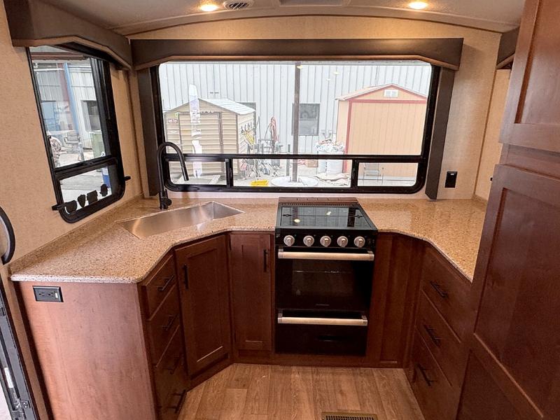 Each Creek Side Mountain Series travel trailer by Outdoors RV is designed for mountain tough four seasons camping for all your adventures. You'll find mountain extreme thermal pane windows, triple layered four seasons roof insulation, and a unique heated, insulated holding tank design. The compact design is compatible for light duty tow vehicles and smaller campsites, so you may not even need to purchase a new vehicle to start camping. Each model includes LG solid surface countertops, ultra leather furniture, and XL panoramic slide out windows for great outdoor views. These travel trailers also feature a mountain comfort premium mattress, 12V USB ports on either side of the bed, and XL bed nightstands for convenient storage.