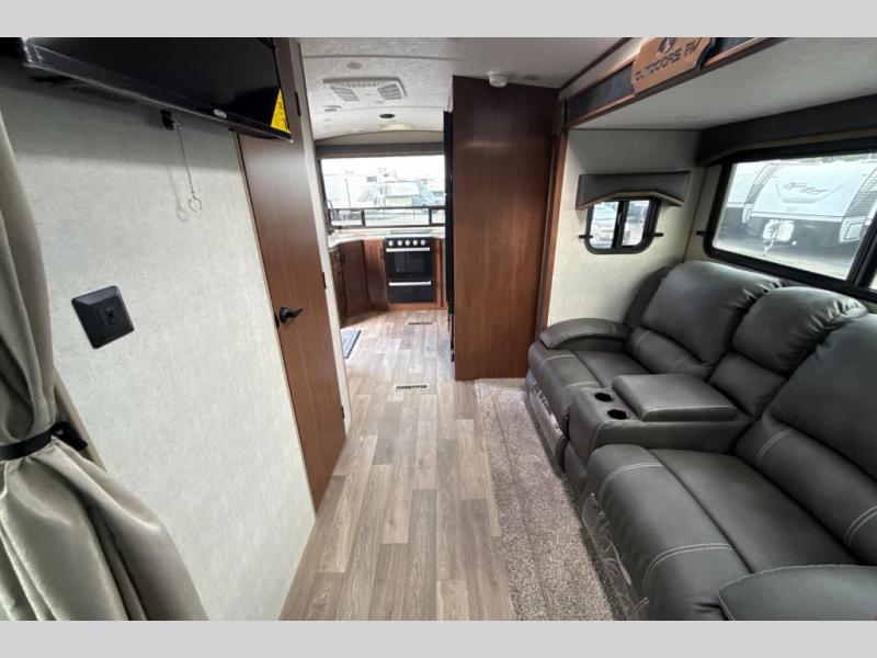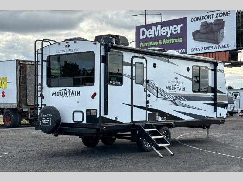 Each Creek Side Mountain Series travel trailer by Outdoors RV is designed for mountain tough four seasons camping for all your adventures. You'll find mountain extreme thermal pane windows, triple layered four seasons roof insulation, and a unique heated, insulated holding tank design. The compact design is compatible for light duty tow vehicles and smaller campsites, so you may not even need to purchase a new vehicle to start camping. Each model includes LG solid surface countertops, ultra leather furniture, and XL panoramic slide out windows for great outdoor views. These travel trailers also feature a mountain comfort premium mattress, 12V USB ports on either side of the bed, and XL bed nightstands for convenient storage.