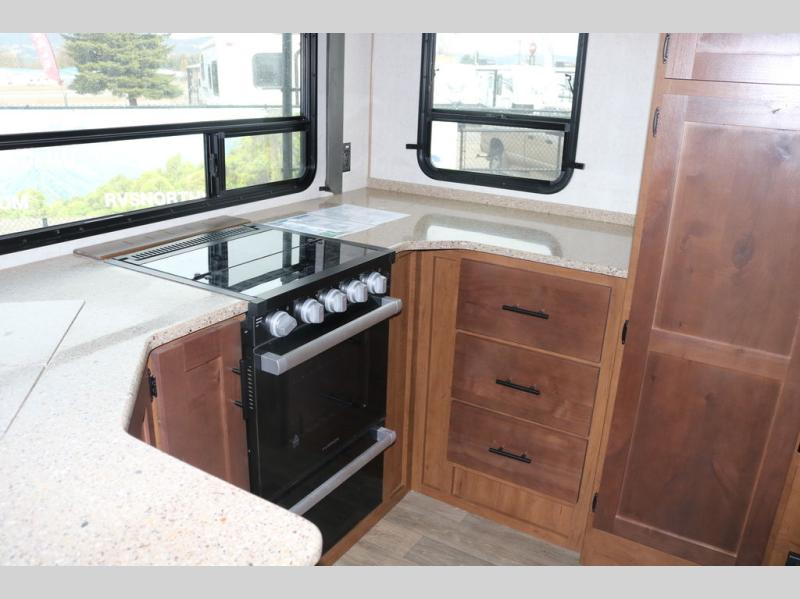Each Creek Side Mountain Series travel trailer by Outdoors RV is designed for mountain tough four seasons camping for all your adventures. You'll find mountain extreme thermal pane windows, triple layered four seasons roof insulation, and a unique heated, insulated holding tank design. The compact design is compatible for light duty tow vehicles and smaller campsites, so you may not even need to purchase a new vehicle to start camping. Each model includes LG solid surface countertops, ultra leather furniture, and XL panoramic slide out windows for great outdoor views. These travel trailers also feature a mountain comfort premium mattress, 12V USB ports on either side of the bed, and XL bed nightstands for convenient storage.