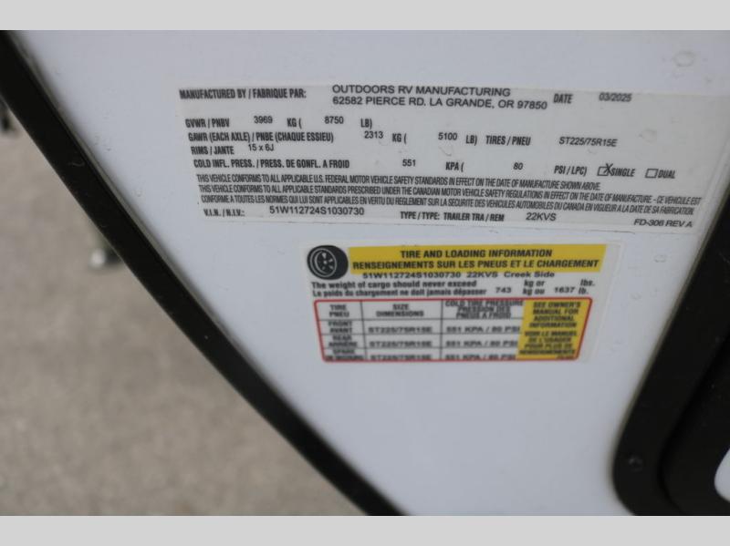 New 2025 Outdoors RV Creek Side Mountain Series 22KVS Travel Trailer