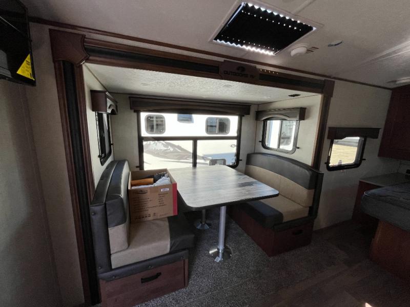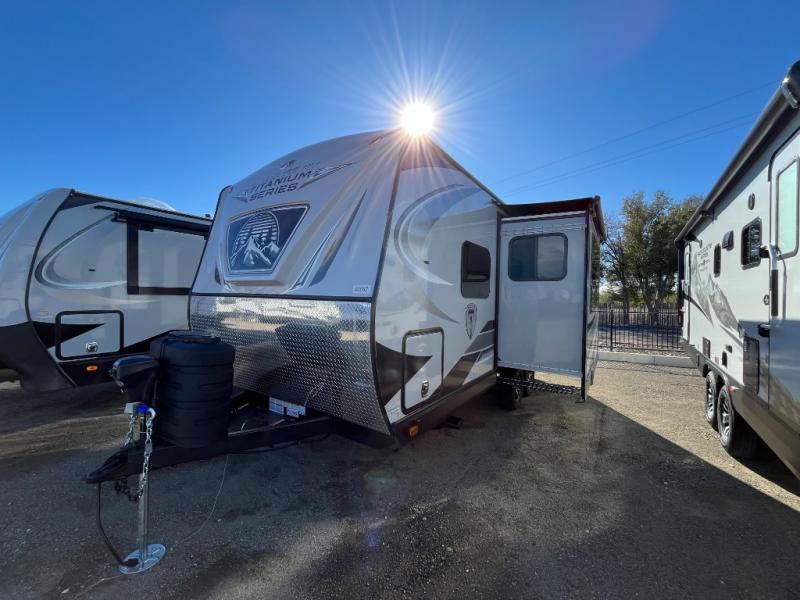 Each Creek Side Titanium Series travel trailers by Outdoors RV are designed for mountain tough four seasons camping for all your adventures. You'll find sleek design frameless thermal pane windows, Titanium Series graphics package, and a ground control TT auto leveling system. The compact design is compatible for light duty tow vehicles and smaller campsites, so you may not even need to purchase a new vehicle to start camping. You'll fall in love with the mountain lodge interiors, the LG solid surface countertops, and the premium gel infused cooling memory foam Heartland mattress for all-around comfort.