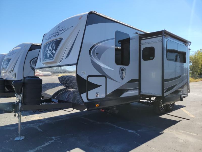 Each Creek Side Titanium Series travel trailers by Outdoors RV are designed for mountain tough four seasons camping for all your adventures. You'll find sleek design frameless thermal pane windows, Titanium Series graphics package, and a ground control TT auto leveling system. The compact design is compatible for light duty tow vehicles and smaller campsites, so you may not even need to purchase a new vehicle to start camping. You'll fall in love with the mountain lodge interiors, the LG solid surface countertops, and the premium gel infused cooling memory foam Heartland mattress for all-around comfort.