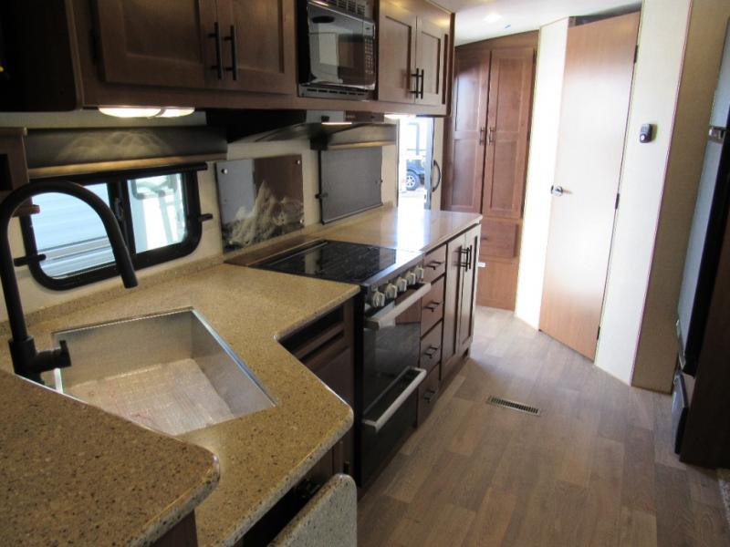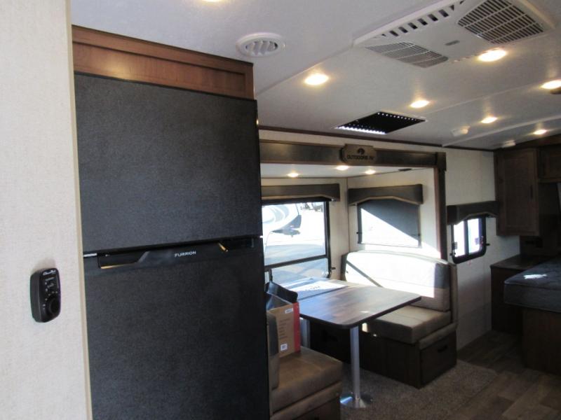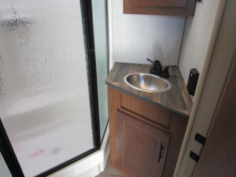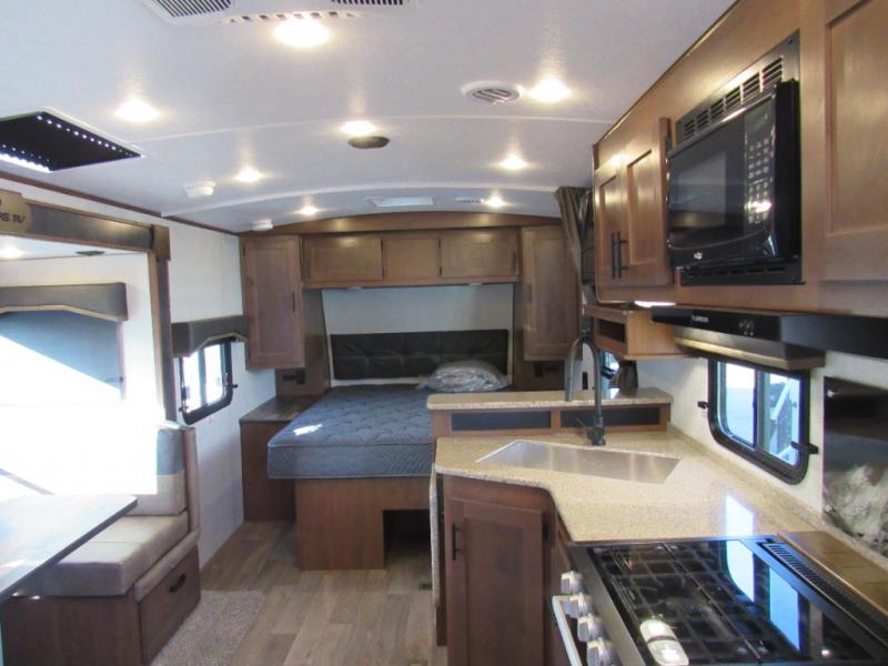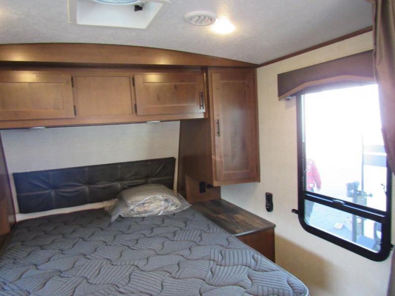 This is the perfect travel trailer for camping trips to the lake or your favorite campground. You will find a full kitchen with plenty of counter space, and a mountain dinette with a skylight to dine under natural lighting. The entryway closet/wardrobe will allow you to store jackets and shoes, and refrigerator will be perfect for your perishables. After you've cleaned up for the evening in the full bath with a shower skylight, head to the front bedroom for a great night's rest on the queen bed. You may even want to watch a movie on the swing-out 32" TV!