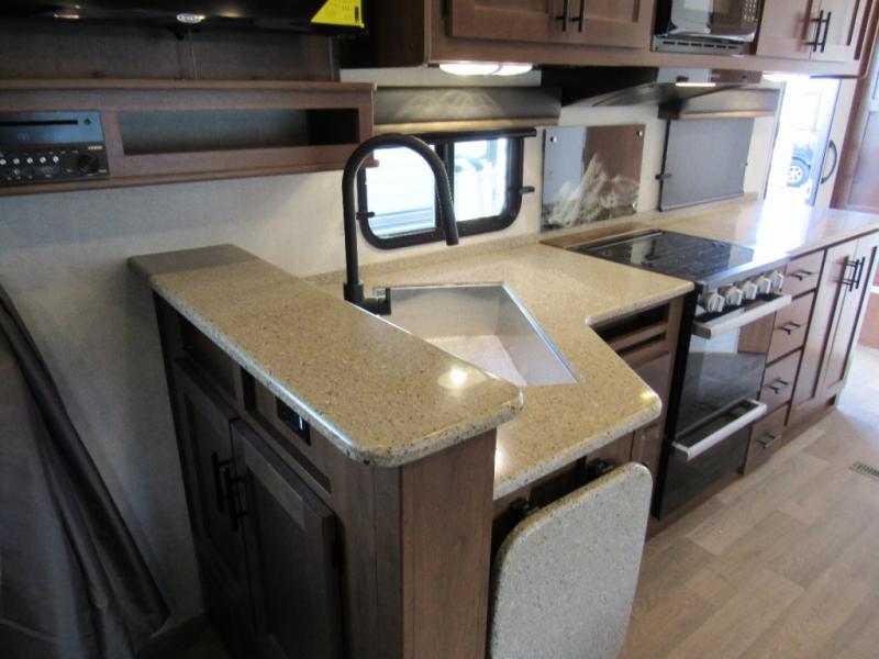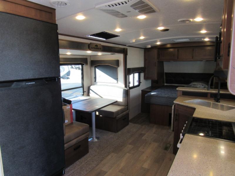 With any Timber Ridge Mountain Series travel trailer by Outdoors RV you will enjoy climate designed four seasons camping thanks to the thermal pane windows and the fully enclosed, heated, and insulated underbelly. The custom built chassis and rugged integrated A-frame are built for strength and durability, along with the rugged 2" bonded aluminum frame walls. Each model includes LG solid surface countertops, granite designed backsplash, vaulted radius ceilings, and a mountain comfort premium mattress for all-around comfort. You will also love the XL panoramic slide out windows and the dual pane living room skylight with a shade to let natural light in!