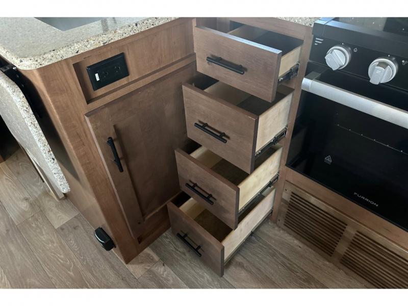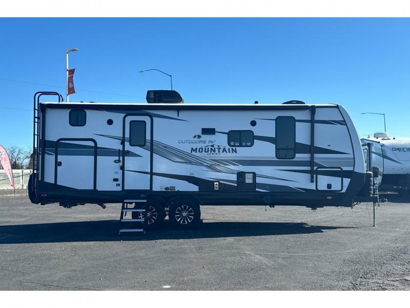 With any Timber Ridge Mountain Series travel trailer by Outdoors RV you will enjoy climate designed four seasons camping thanks to the thermal pane windows and the fully enclosed, heated, and insulated underbelly. The custom built chassis and rugged integrated A-frame are built for strength and durability, along with the rugged 2" bonded aluminum frame walls. Each model includes LG solid surface countertops, granite designed backsplash, vaulted radius ceilings, and a mountain comfort premium mattress for all-around comfort. You will also love the XL panoramic slide out windows and the dual pane living room skylight with a shade to let natural light in!