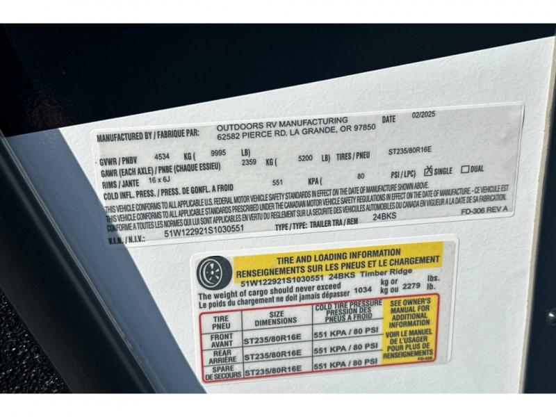 New 2025 Outdoors RV Timber Ridge Mountain Series 24BKS Travel Trailer