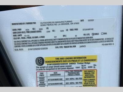 New 2025 Outdoors RV Timber Ridge Mountain Series 24RKS Travel Trailer