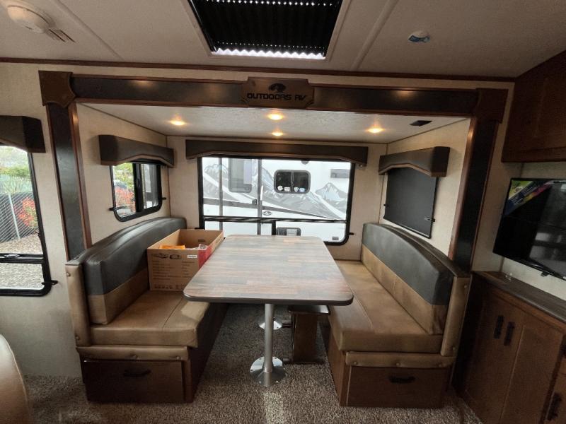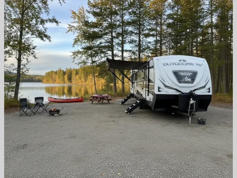 With any Timber Ridge Mountain Series travel trailer by Outdoors RV you will enjoy climate designed four seasons camping thanks to the thermal pane windows and the fully enclosed, heated, and insulated underbelly. The custom built chassis and rugged integrated A-frame are built for strength and durability, along with the rugged 2" bonded aluminum frame walls. Each model includes LG solid surface countertops, granite designed backsplash, vaulted radius ceilings, and a mountain comfort premium mattress for all-around comfort. You will also love the XL panoramic slide out windows and the dual pane living room skylight with a shade to let natural light in!
