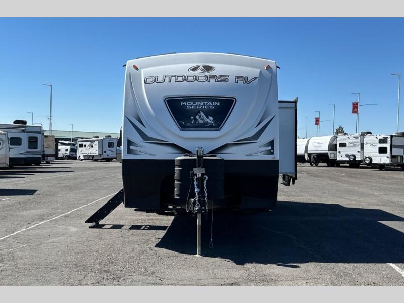With any Timber Ridge Mountain Series travel trailer by Outdoors RV you will enjoy climate designed four seasons camping thanks to the thermal pane windows and the fully enclosed, heated, and insulated underbelly. The custom built chassis and rugged integrated A-frame are built for strength and durability, along with the rugged 2" bonded aluminum frame walls. Each model includes LG solid surface countertops, granite designed backsplash, vaulted radius ceilings, and a mountain comfort premium mattress for all-around comfort. You will also love the XL panoramic slide out windows and the dual pane living room skylight with a shade to let natural light in!