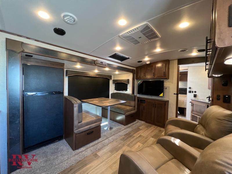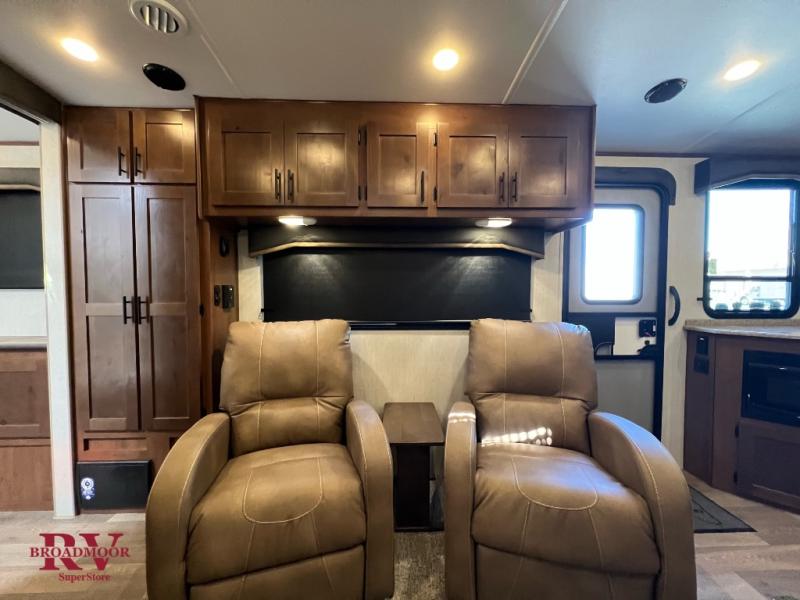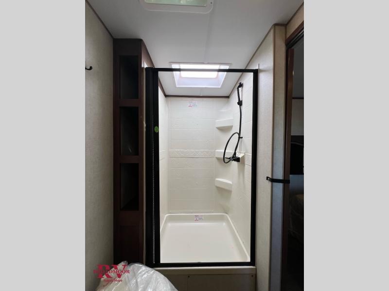 Pack your bags and escape the city life for weekend camping trips in this dual entry travel trailer. When you arrive at the campsite, take a hike to stretch your legs, then come back to prepare lunch on the three burner cooktop. You'll find plenty of counter space in the kitchen, plus a refrigerator for cold drinks and perishables. The dual lounge chairs will have you feeling right at home, or you can choose the optional sofa with built-in recliners, or the optional sleeper sofa if you need more sleeping space. This model includes a walk-through bath that is both spacious and convenient since it leads to to the front master bedroom. You can't beat a queen bed, dual bedroom wardrobes, and your own exterior entry door!
